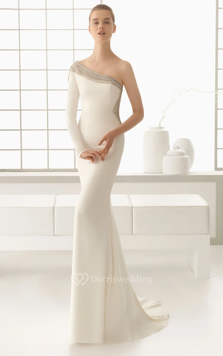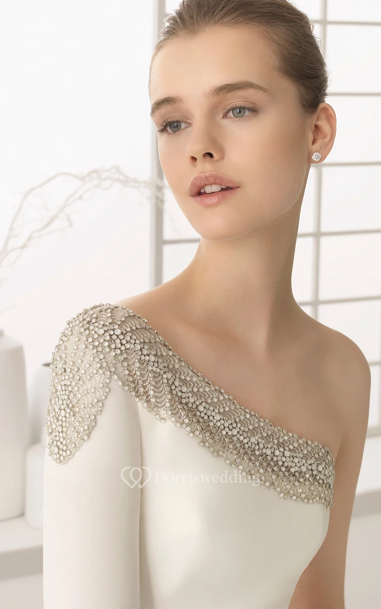 One-Shoulder Beaded Long-Sleeved Dress