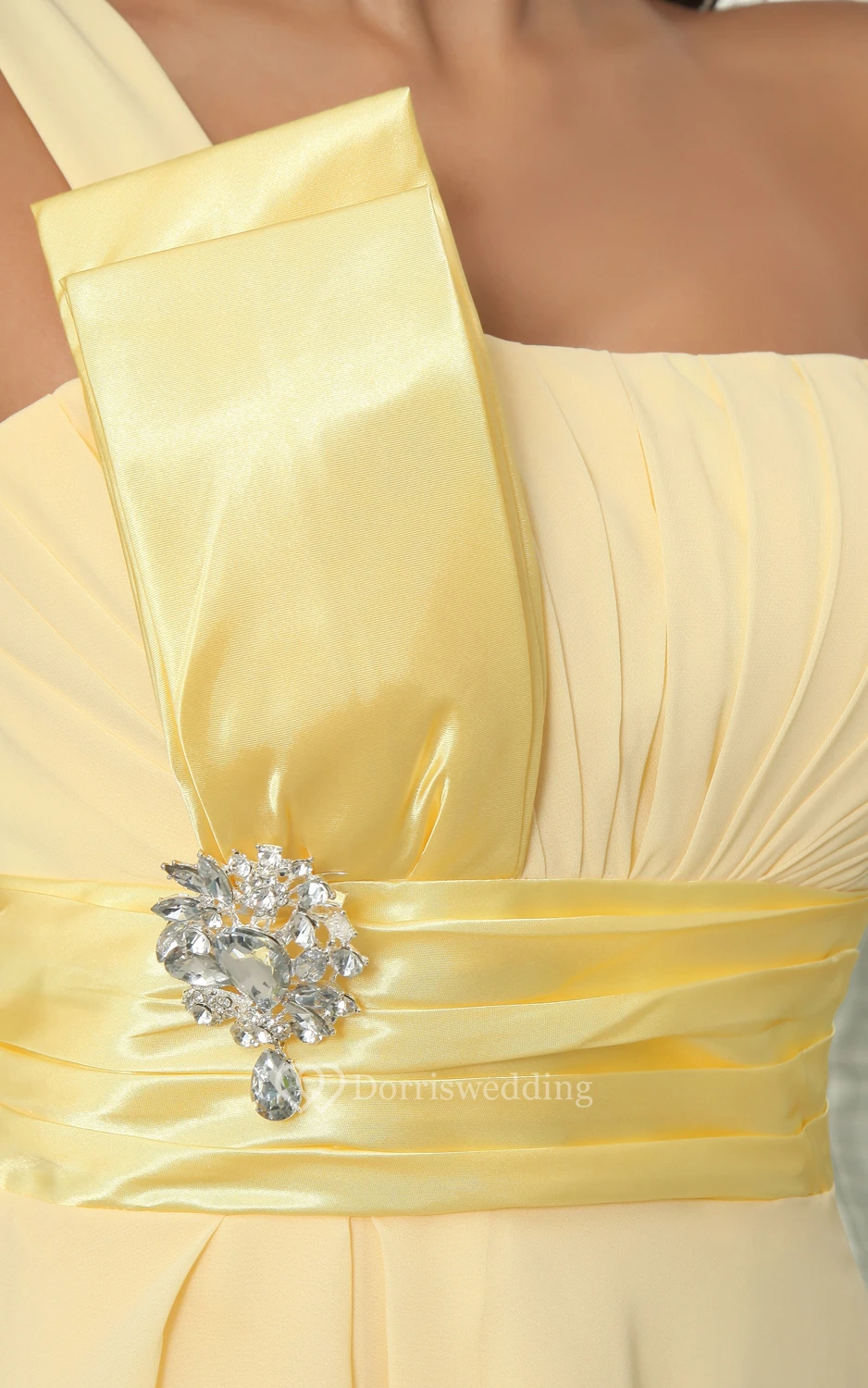 One-Shoulder Chiffon A-Line Dress With Broach and Ruched Waist