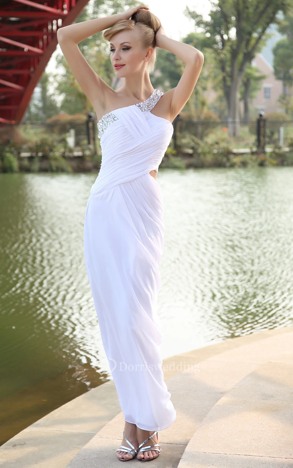 One-Shoulder Chiffon Body-Fitting Dress With Beaded Strap