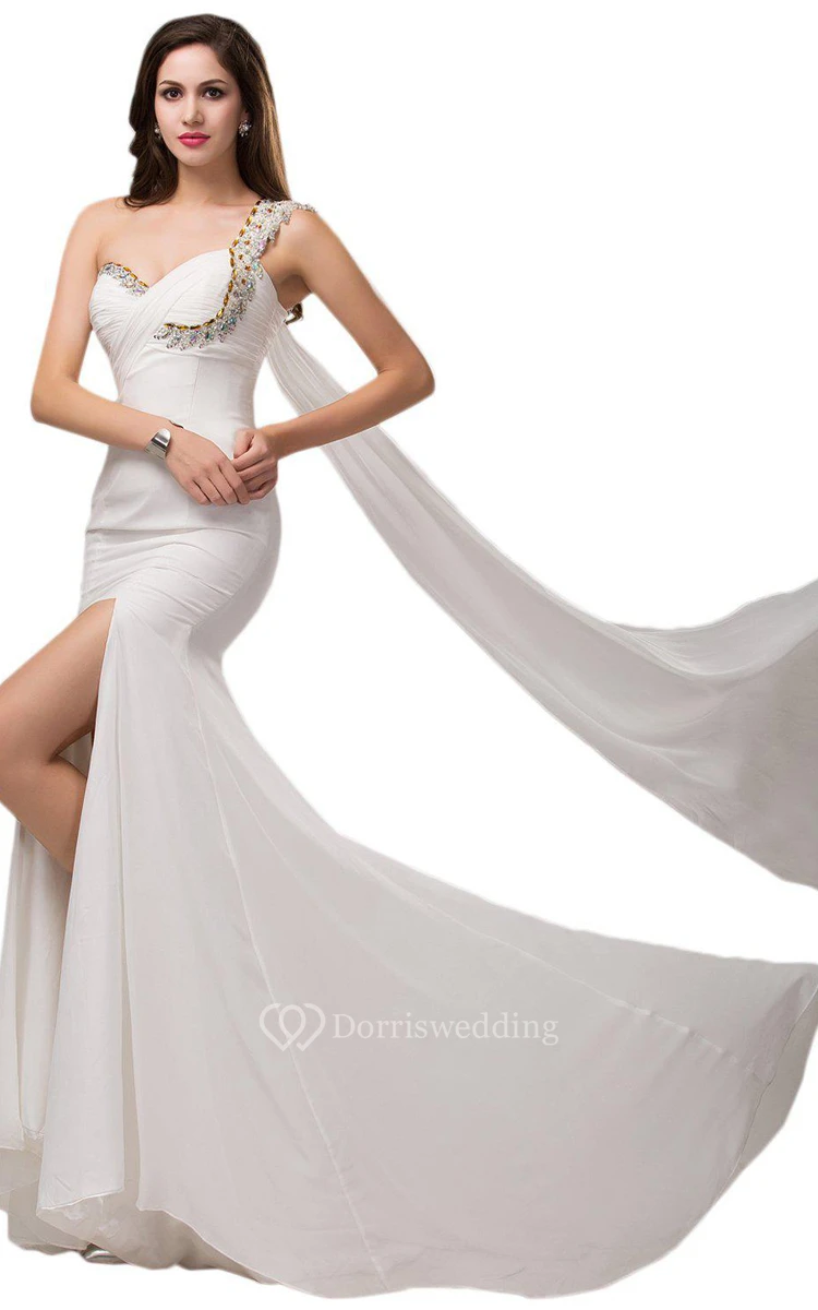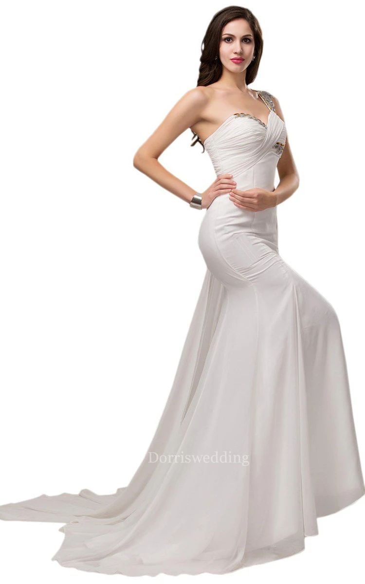 One-shoulder Chiffon Dress With Crystal Detail