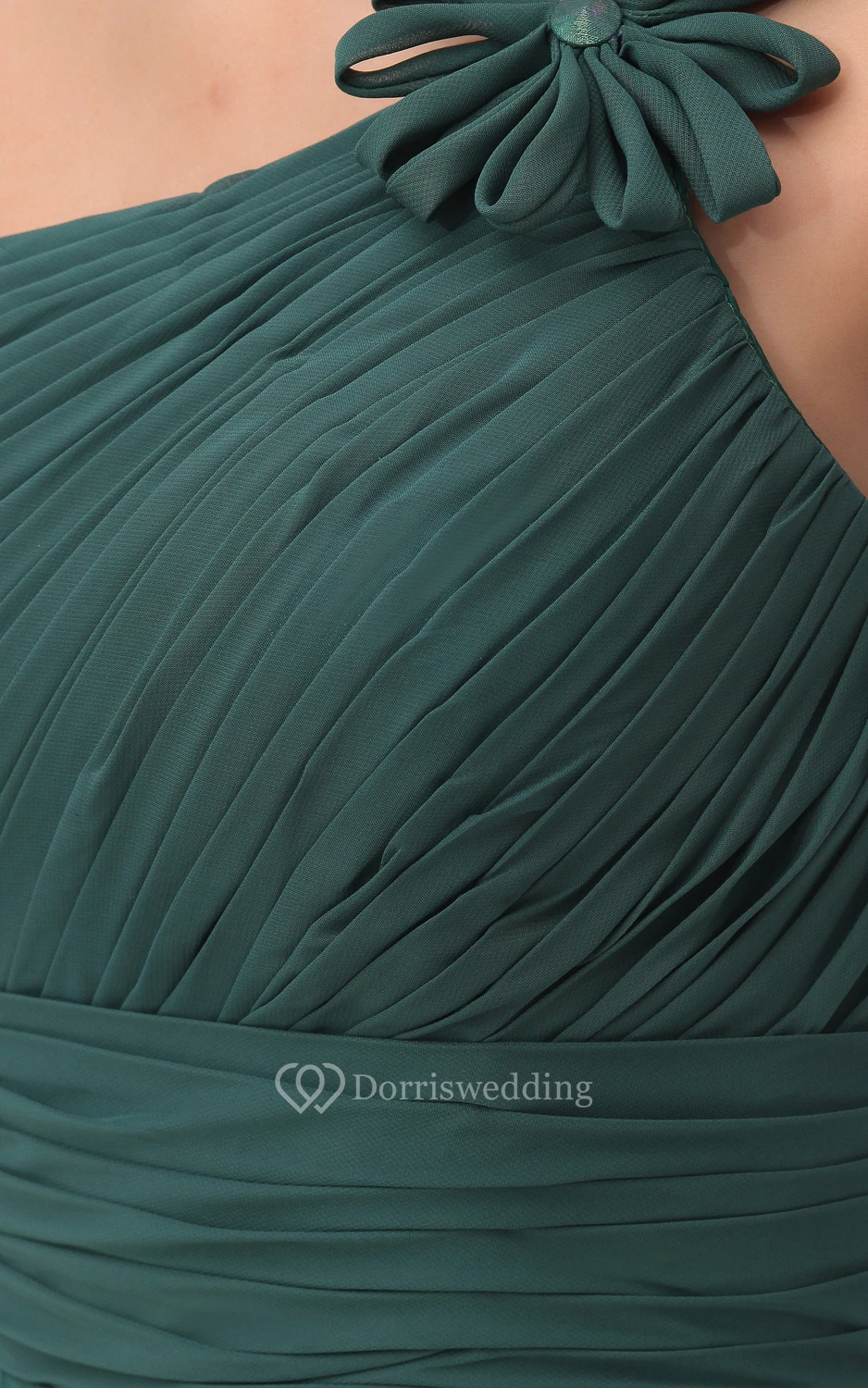 One-Shoulder Chiffon Dress With Ruching and Flower