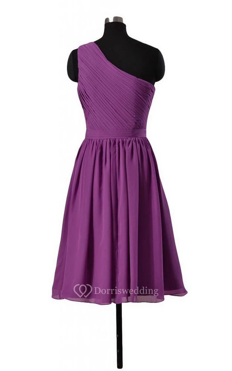 One-shoulder Chiffon Gown With Asymmetrical Pleats