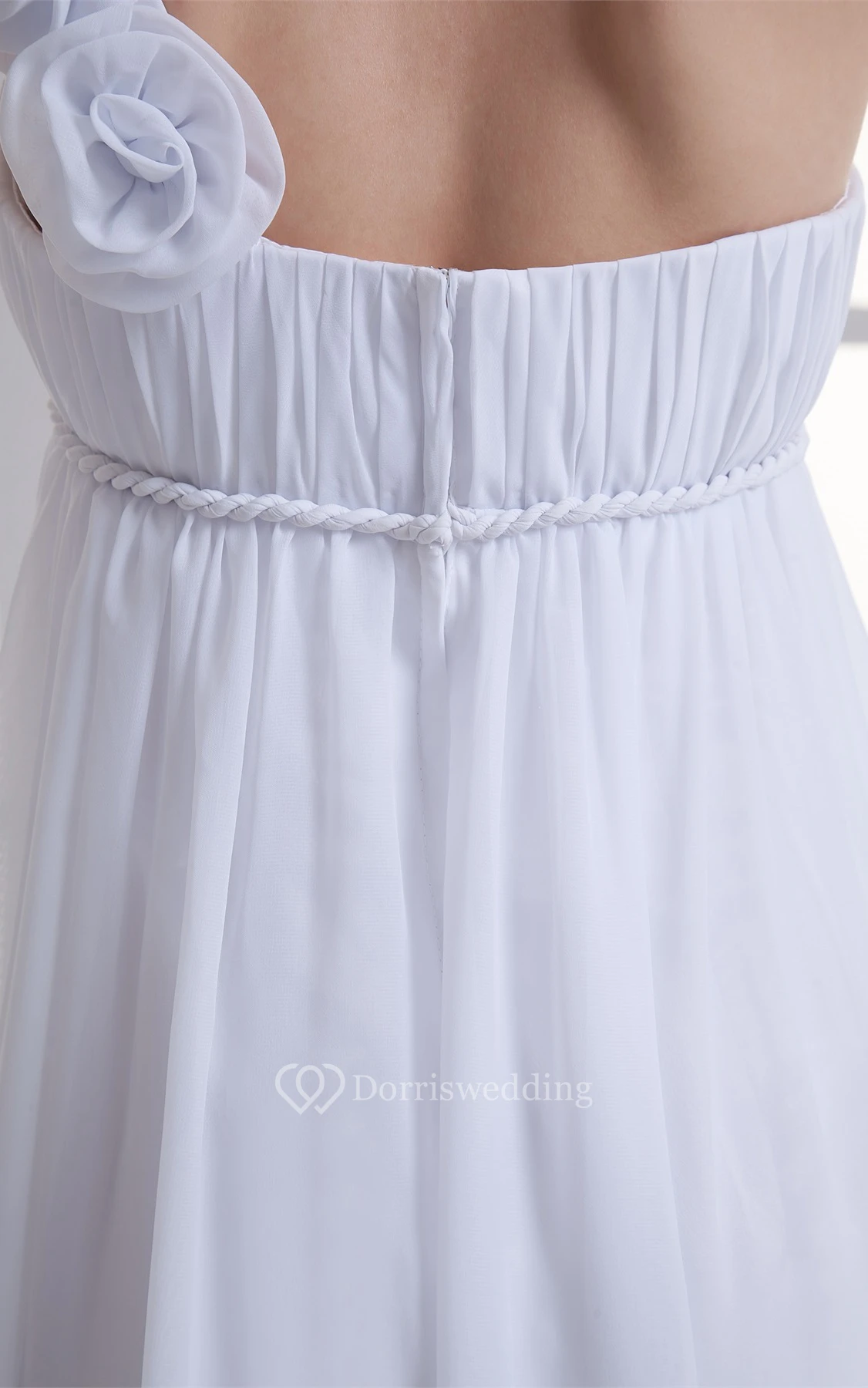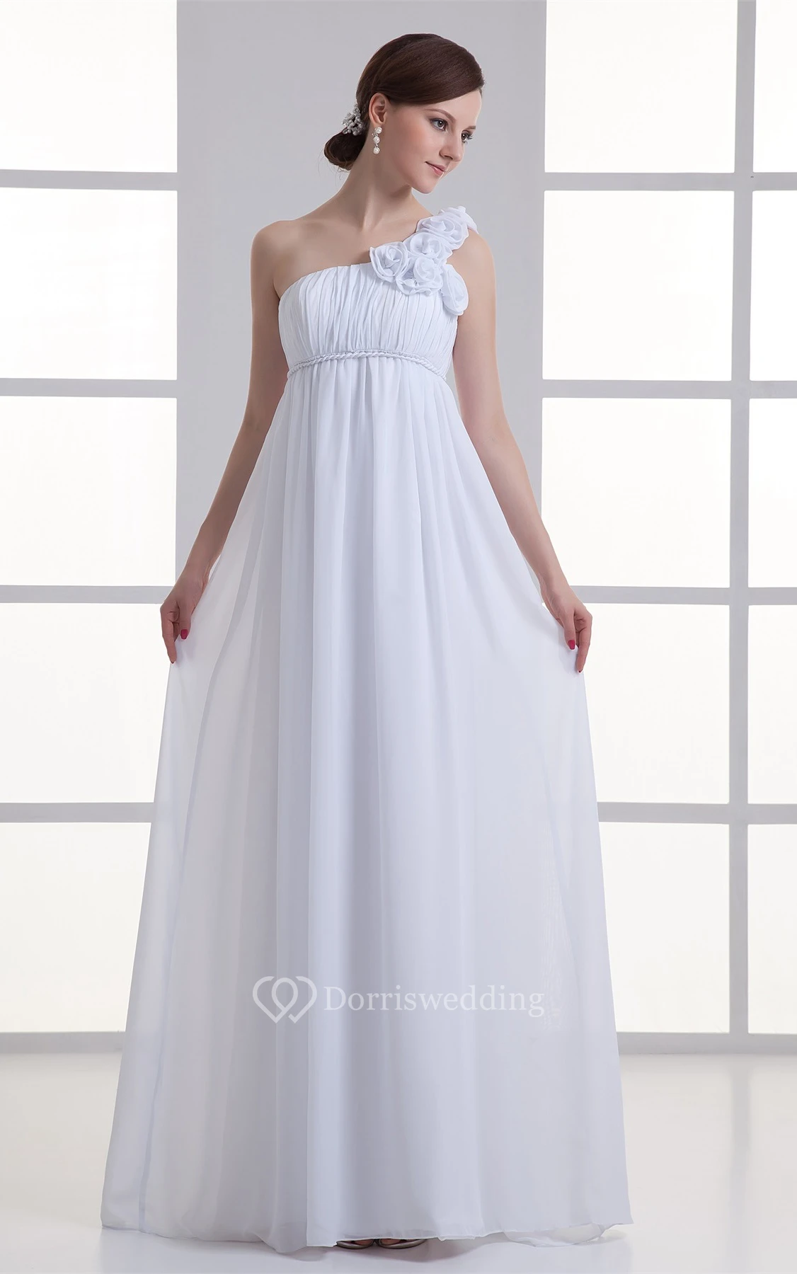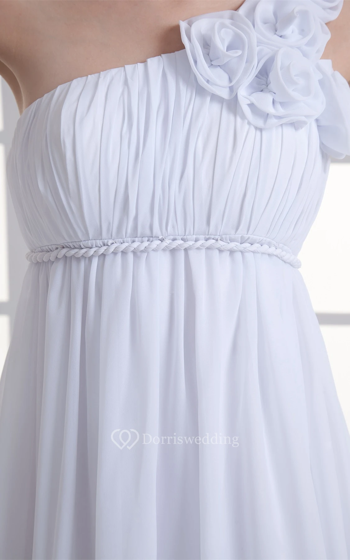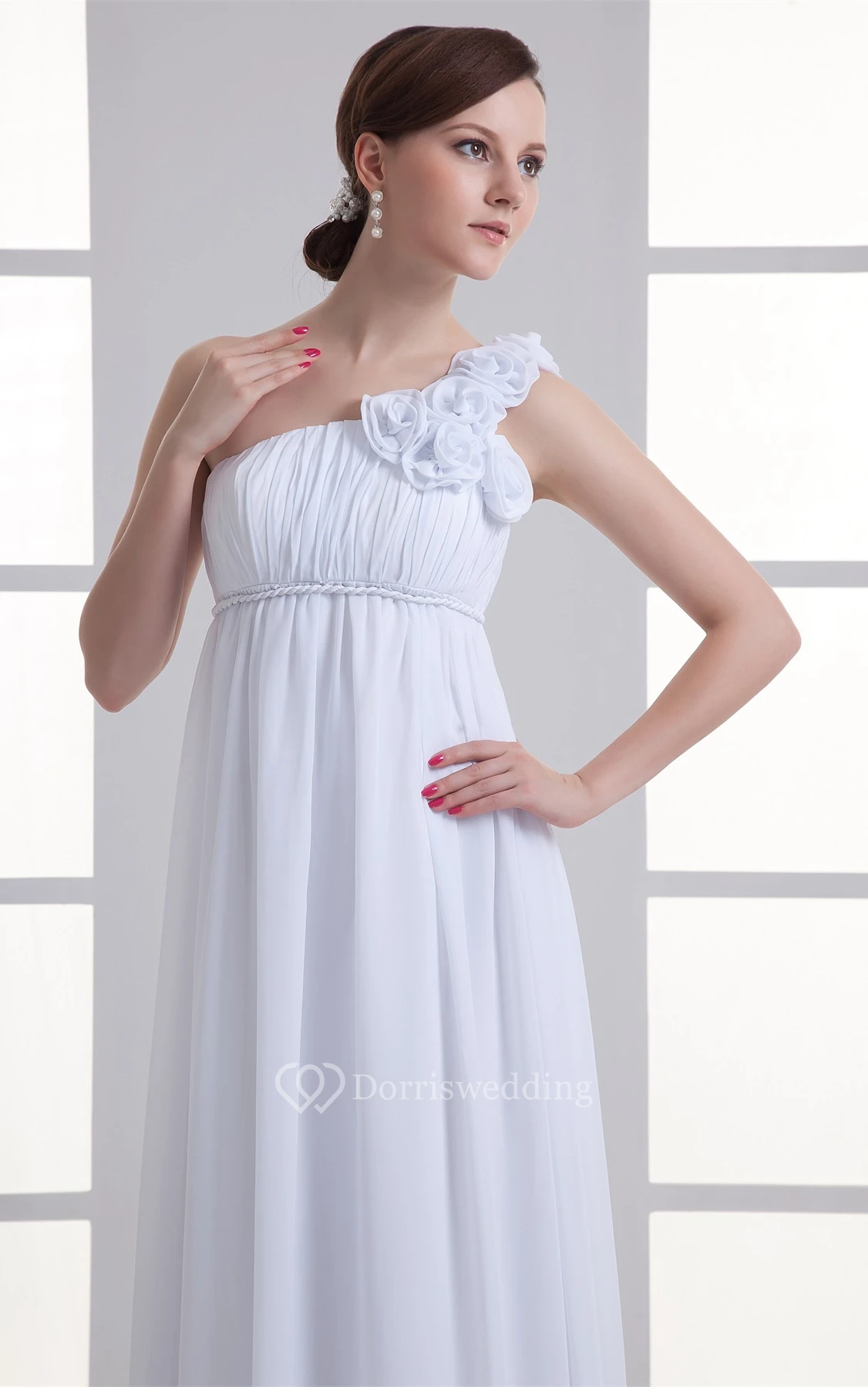 One-Shoulder Chiffon Long Empire Dress With Flower