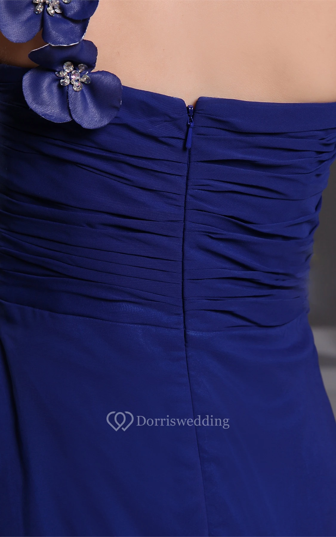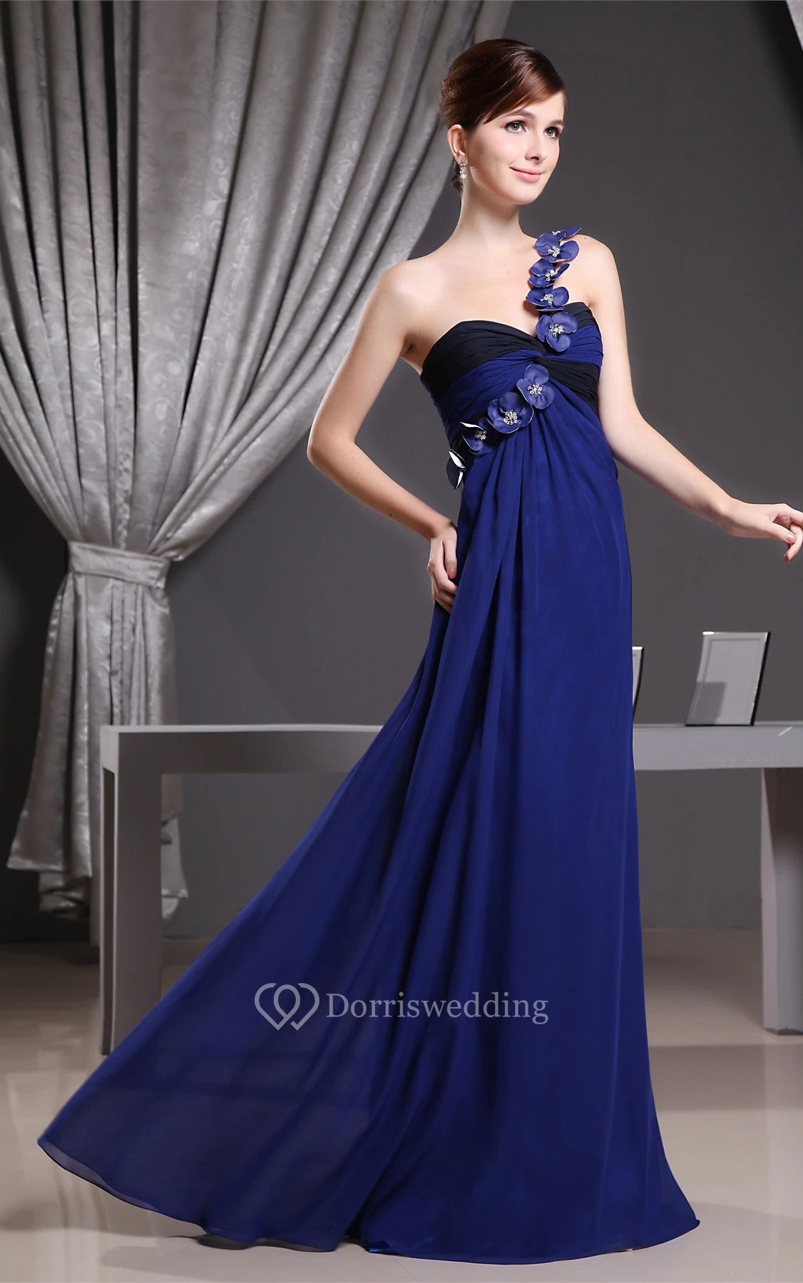 One-Shoulder Chiffon Maxi Ruched Dress With Flower