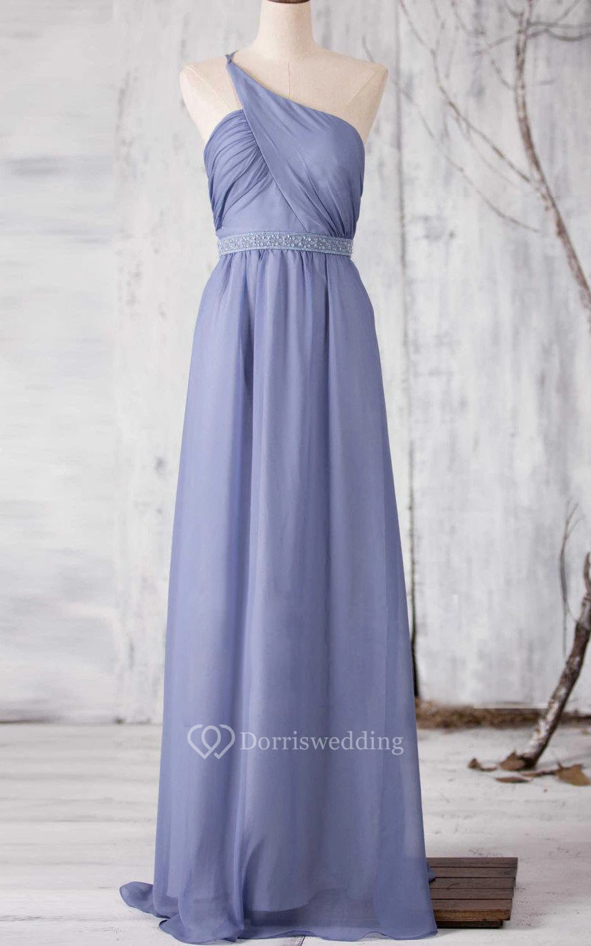 One Shoulder Criss Cross Bodice A-line Chiffon Long Dress With Beading