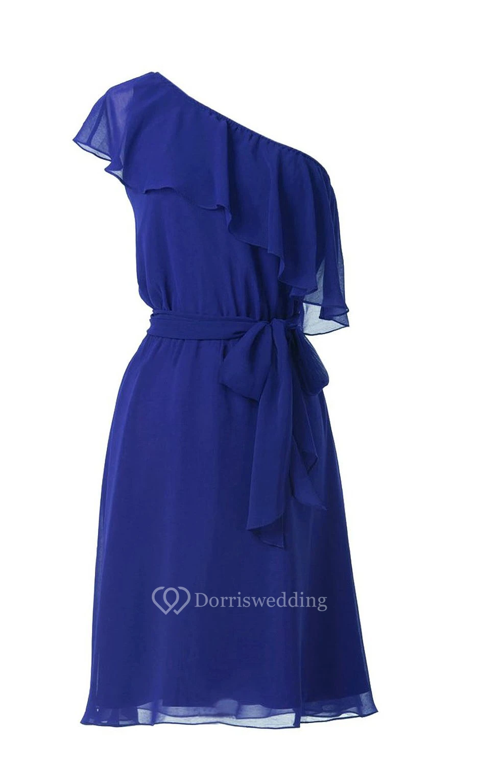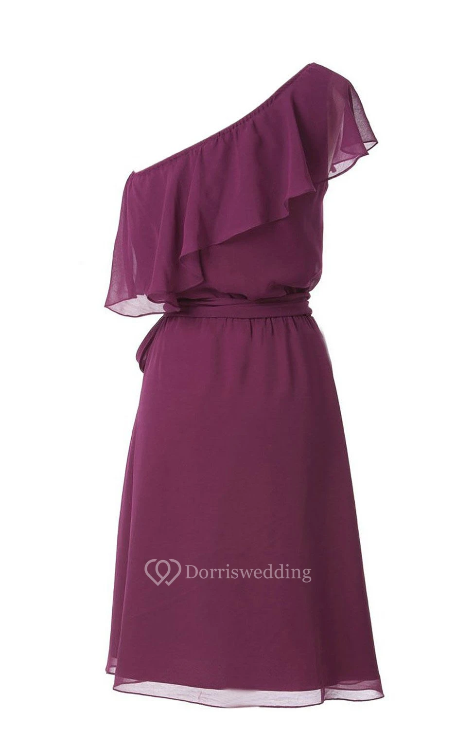 One-shoulder Drapped Neck Knee-length Chiffon Dress
