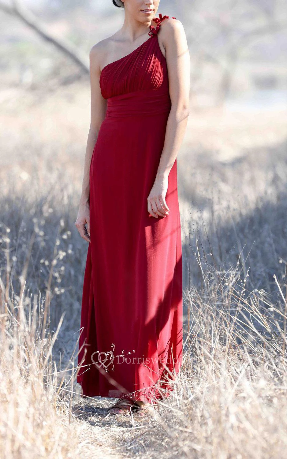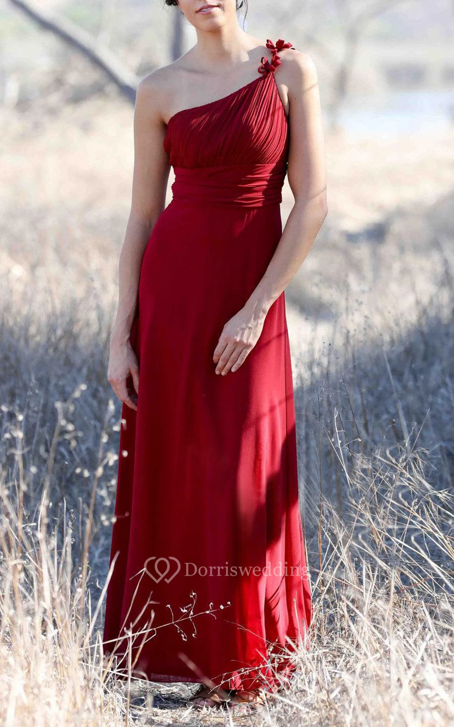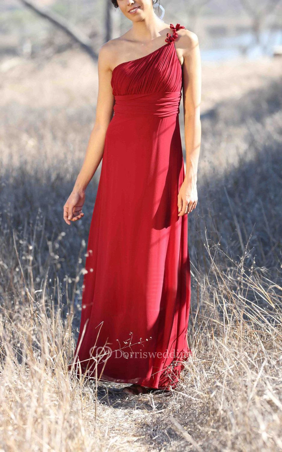 One-shoulder Empire A-line Chiffon Floor Length Dress With Ruching