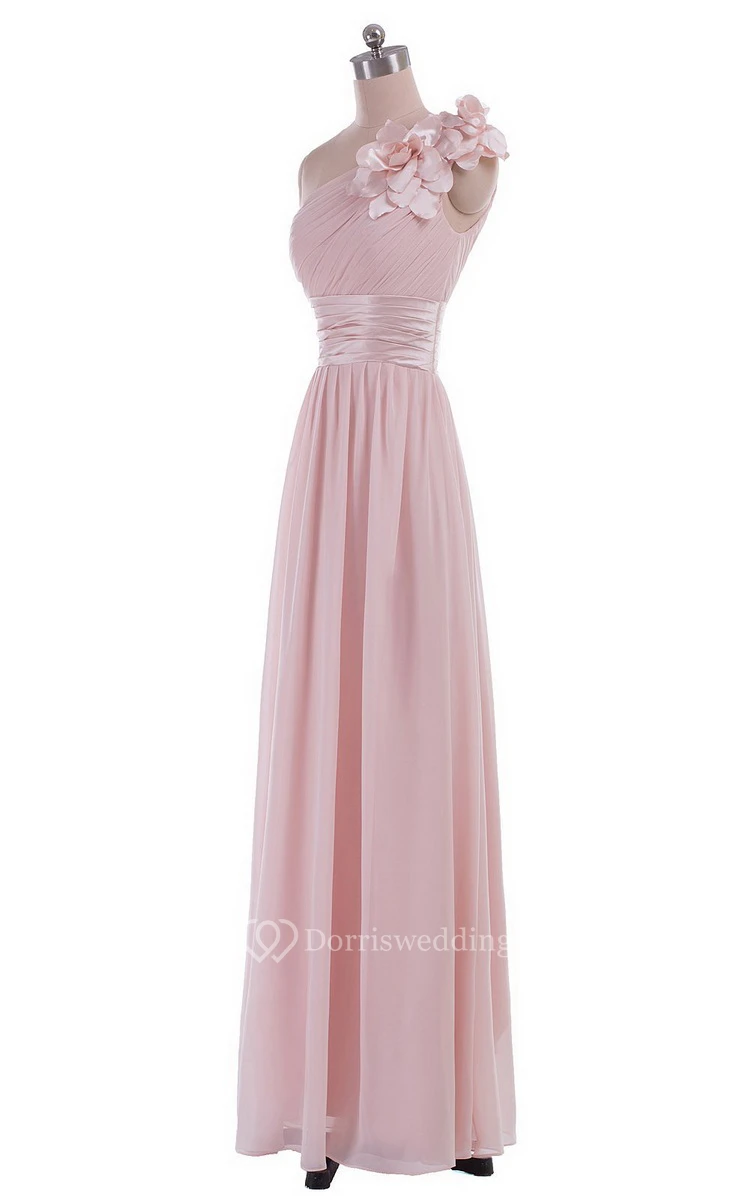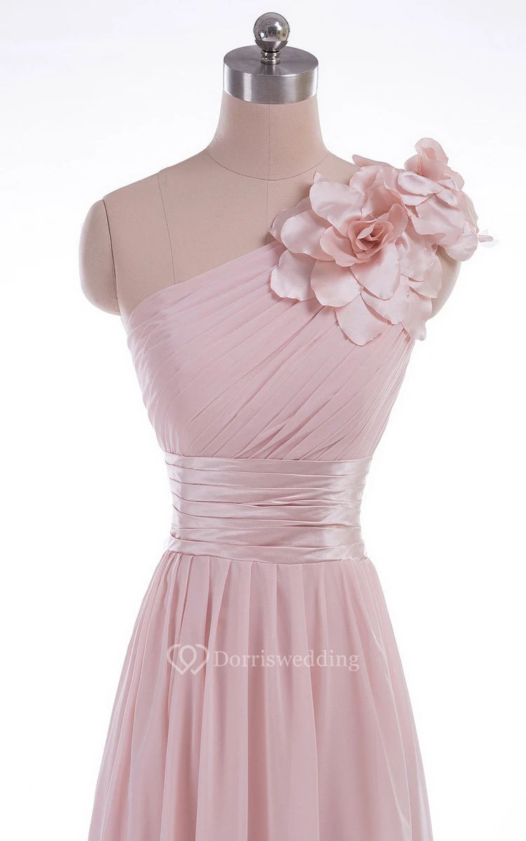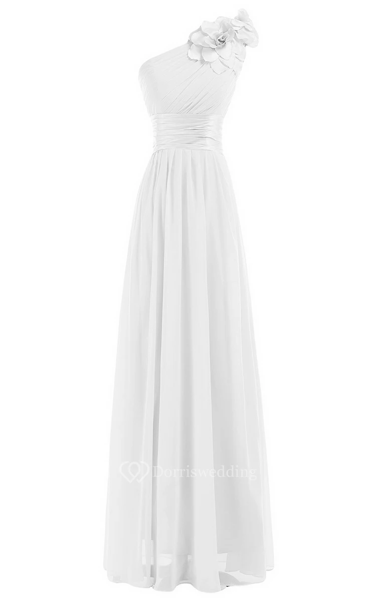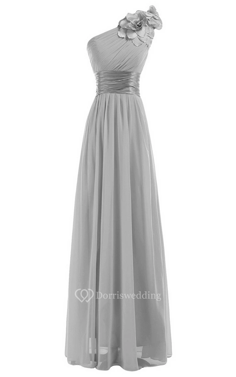 One-shoulder Empire Chiffon Dress With Flower