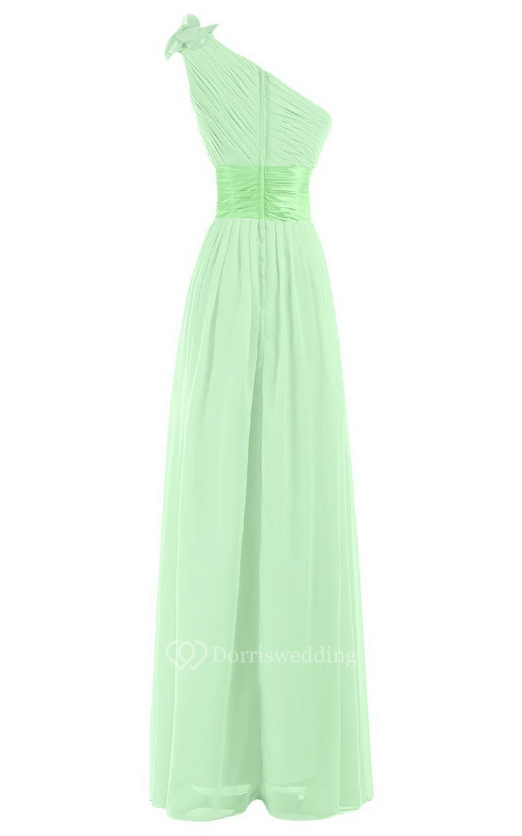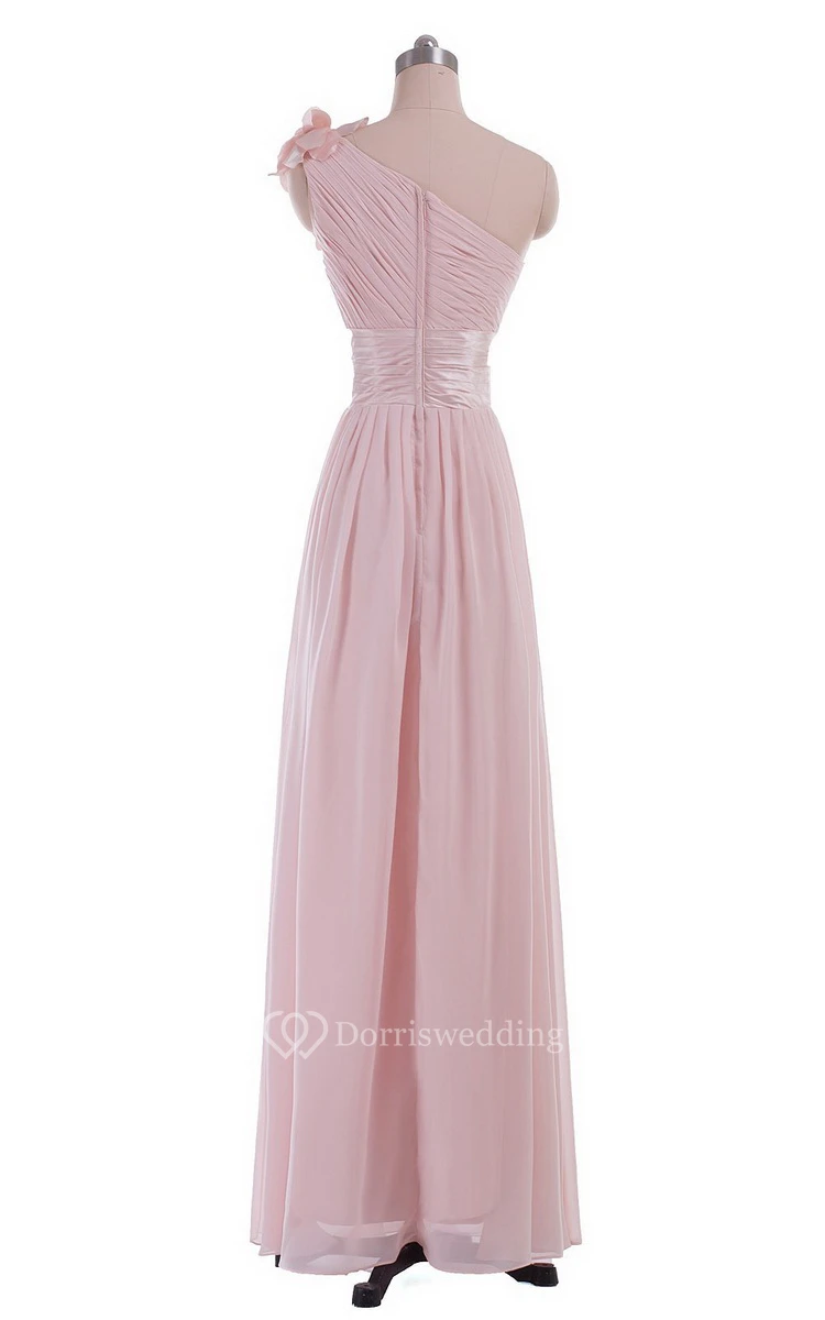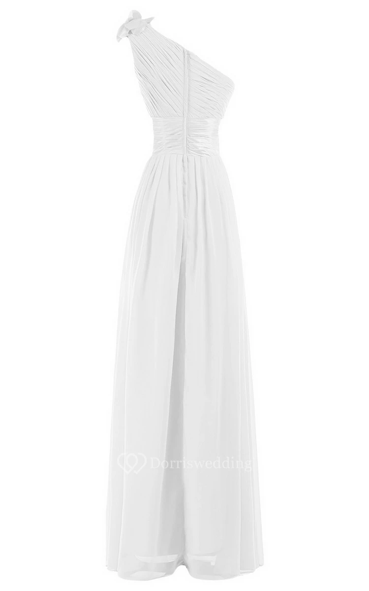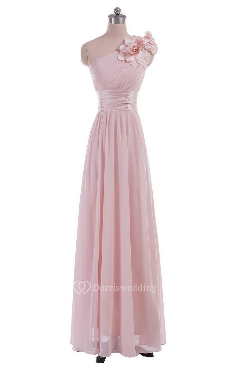 One-shoulder Empire Chiffon Dress With Flower