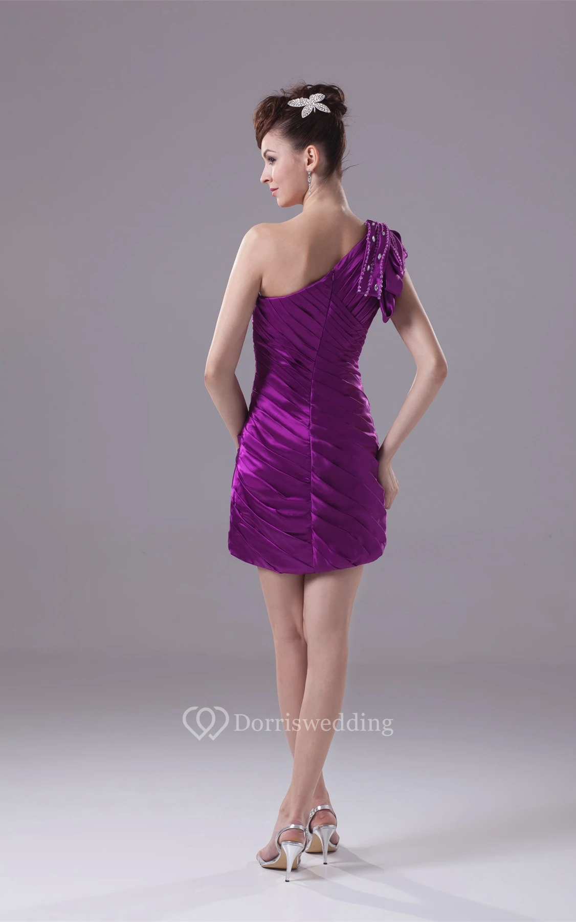 One-Shoulder Fitted Criss-Cross Dress With Crystal Detailing