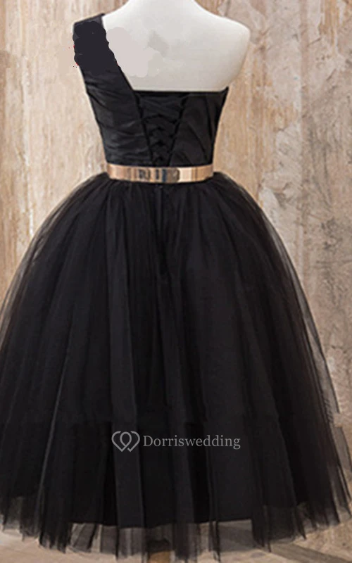 One-shoulder Knee-length A-line Tulle Dress With Lace Up Back