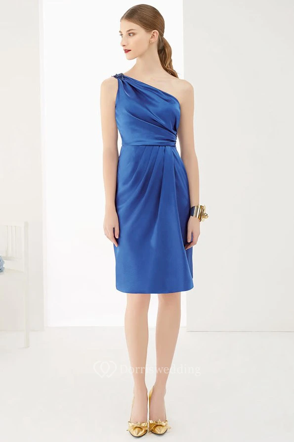 One Shoulder Knee Length Taffeta Wrapped Prom Dress With Removable Jacket
