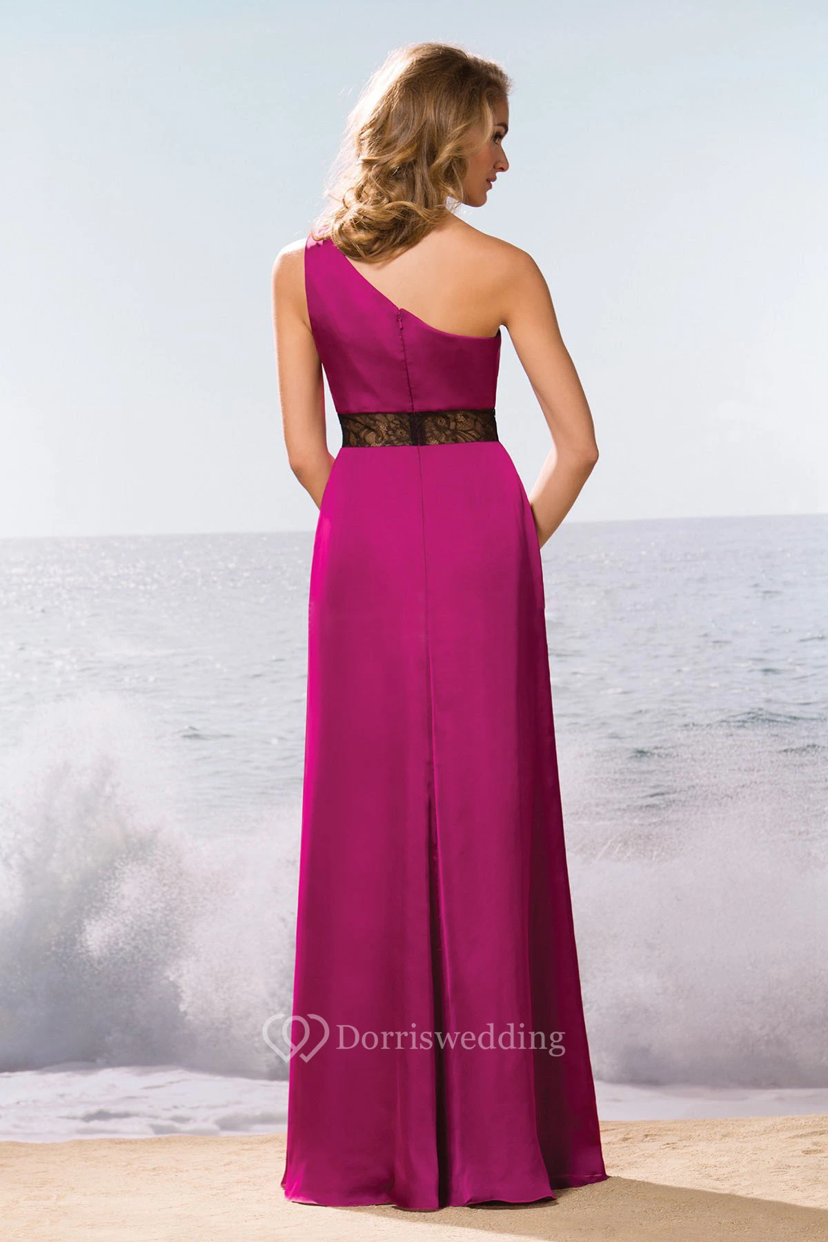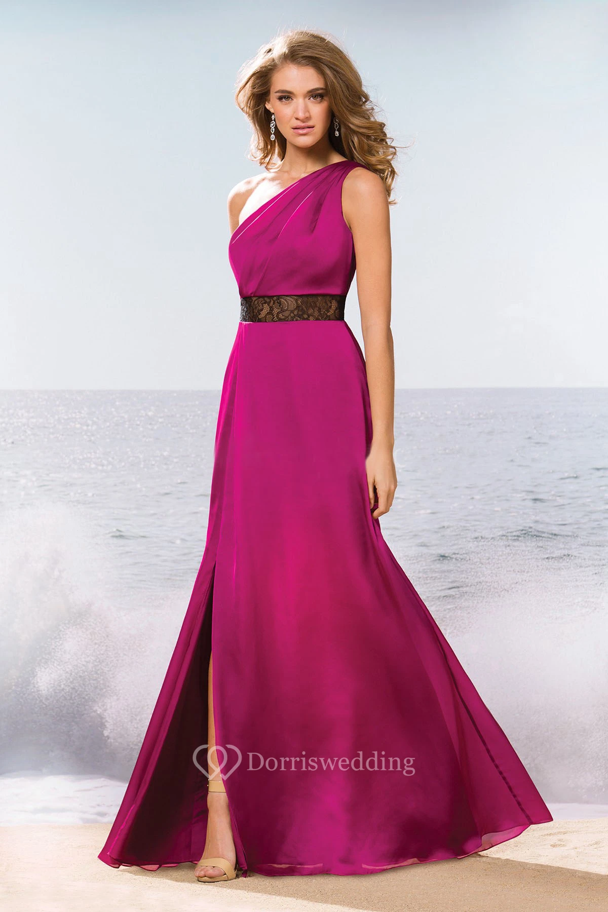 One-Shoulder Long Bridesmaid Dress With Lace Detail And Front Slit