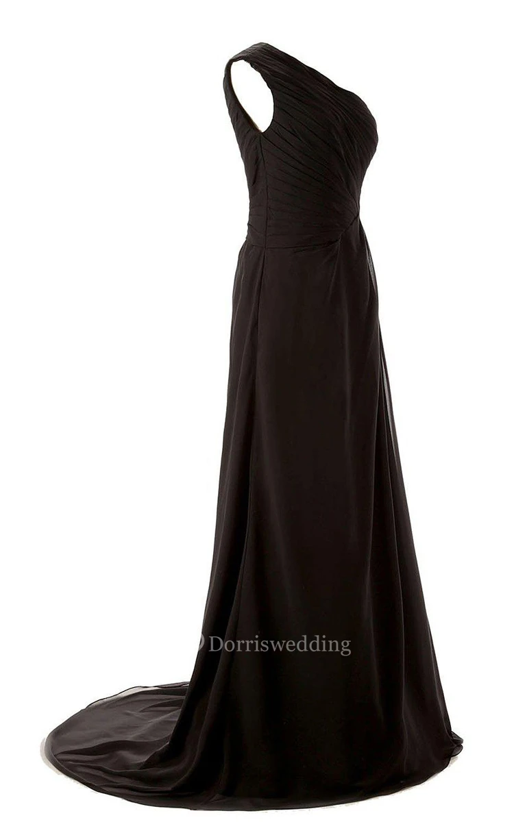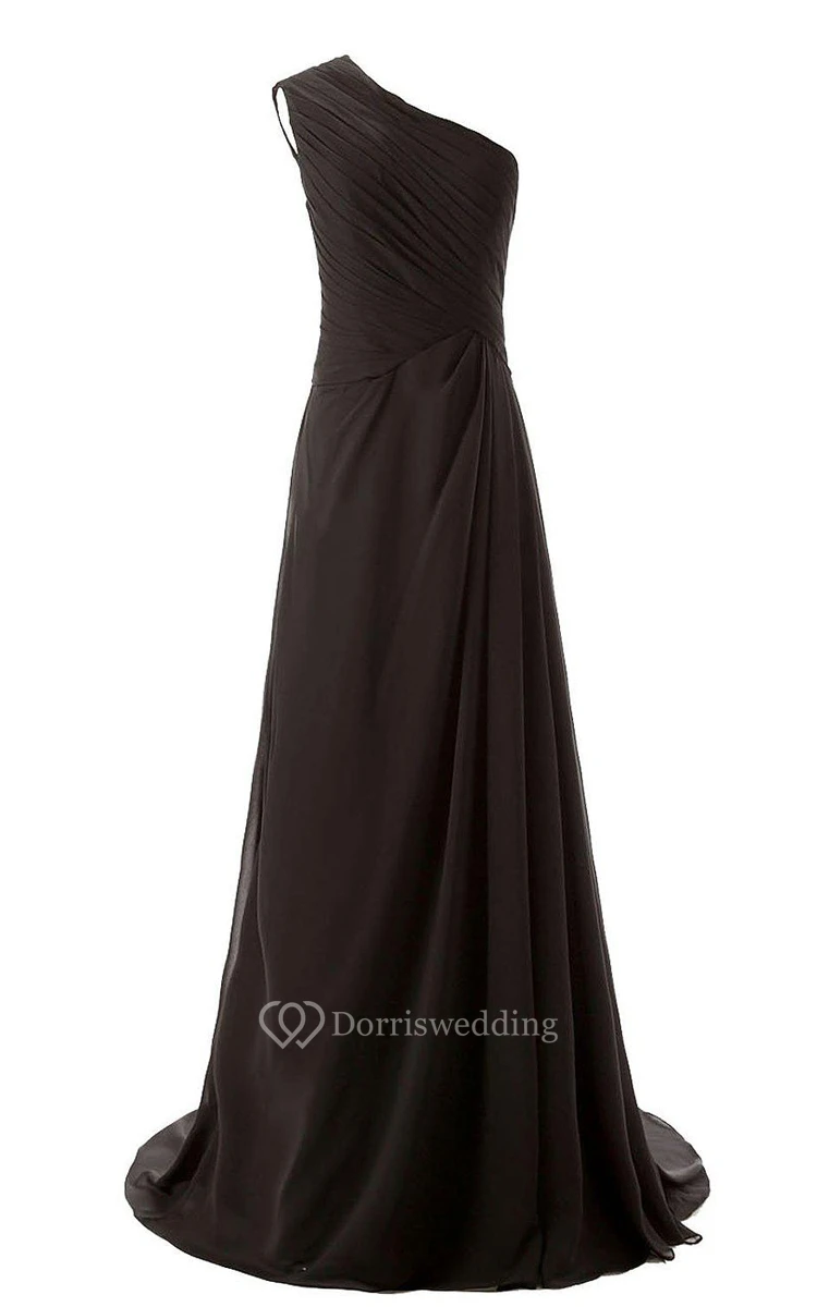One-shoulder Long Chiffon Dres With Sweep Train