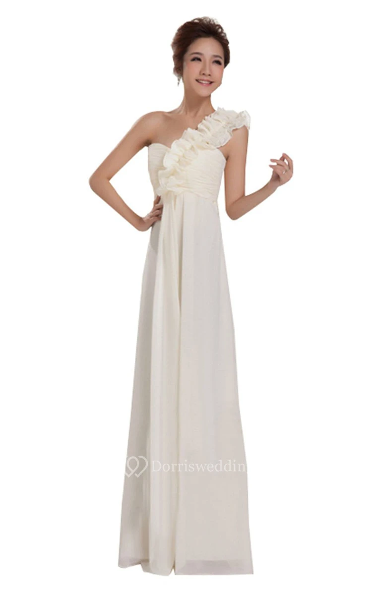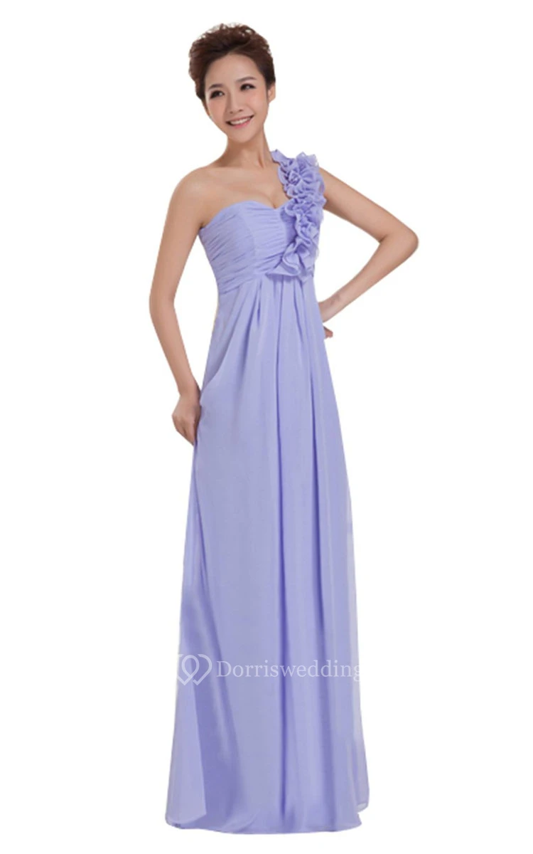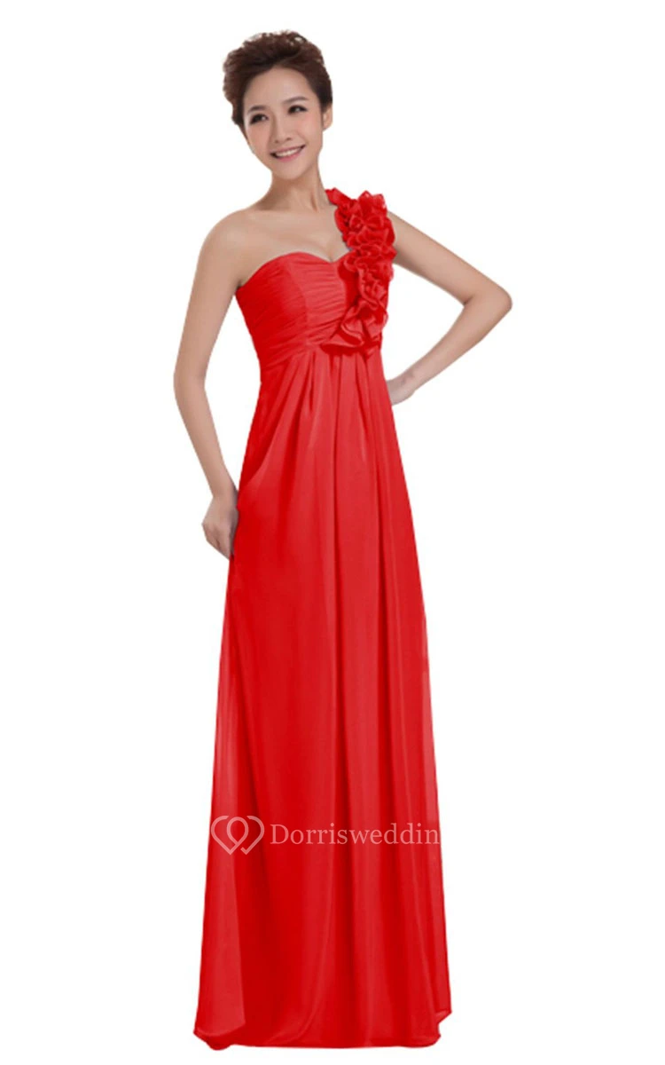 One-shoulder Long Chiffon Dress With Floral Strap