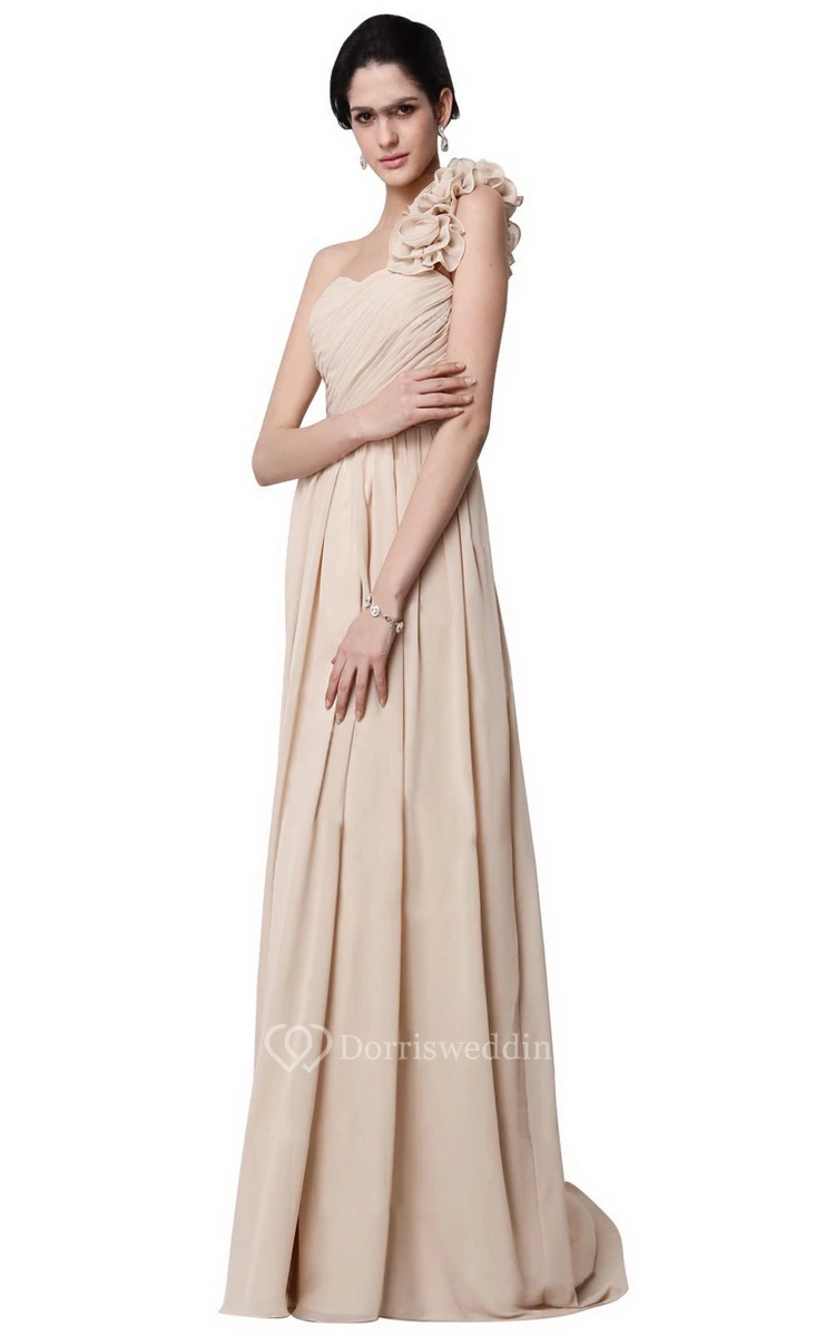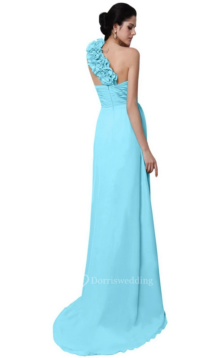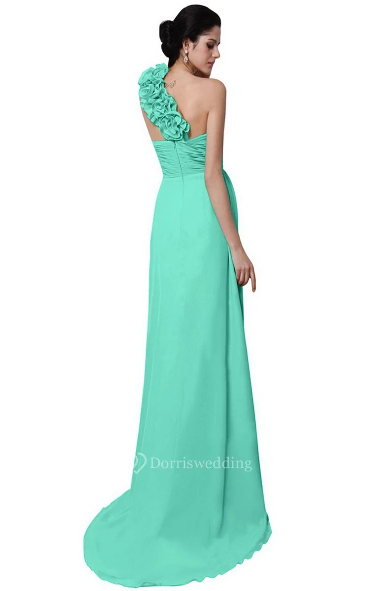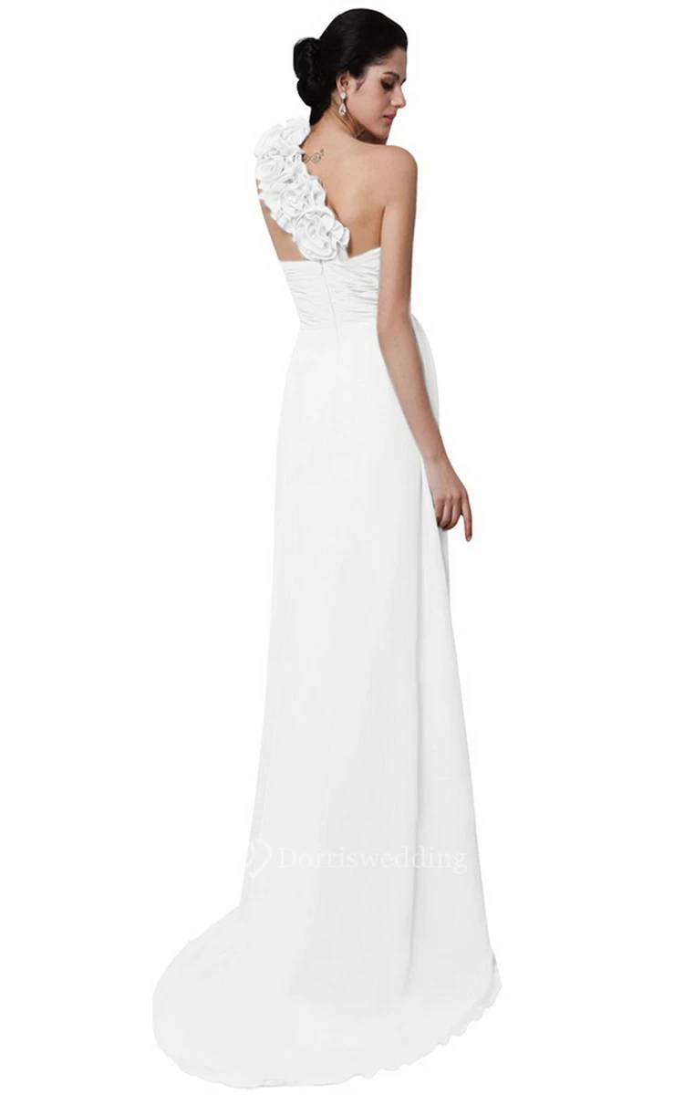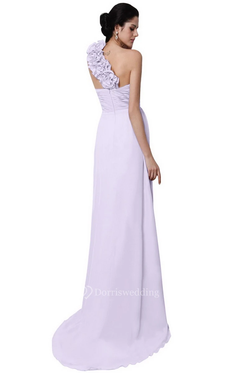 One-shoulder Long Chiffon Dress With Flowers