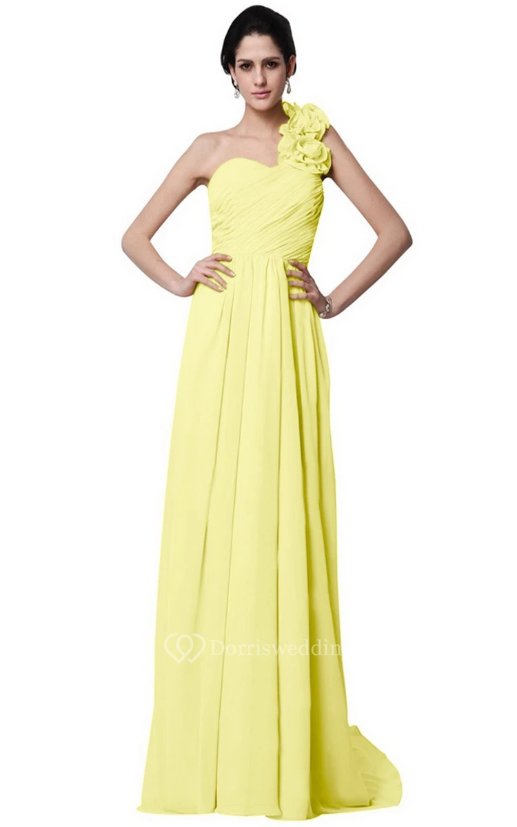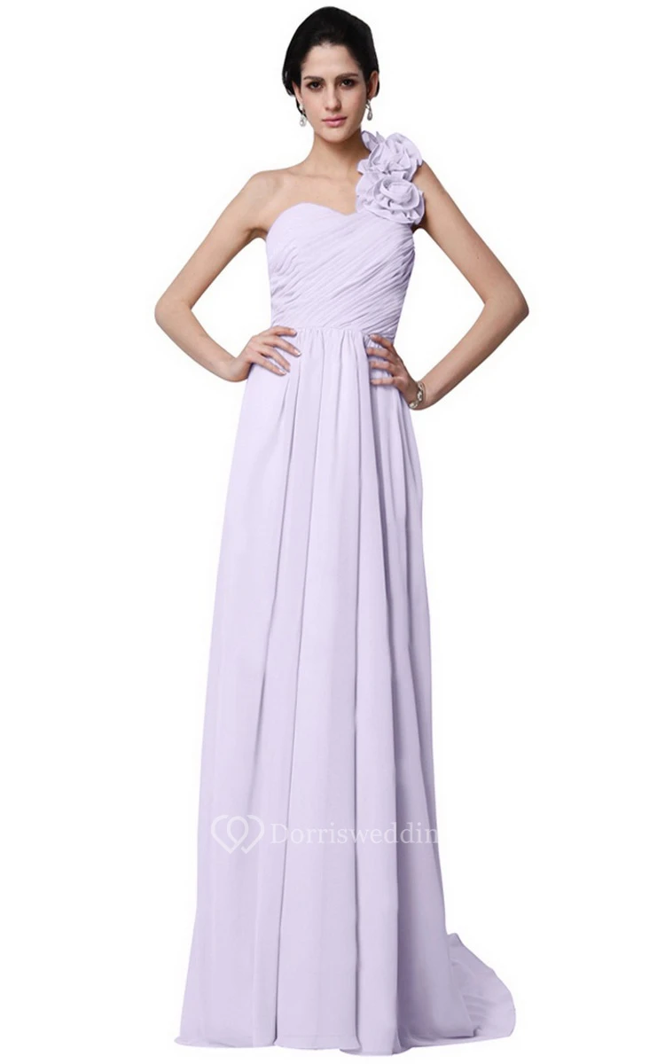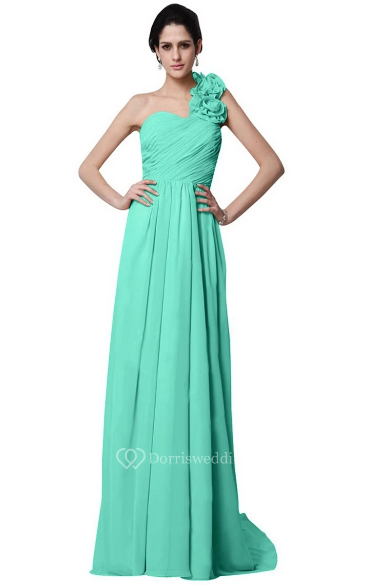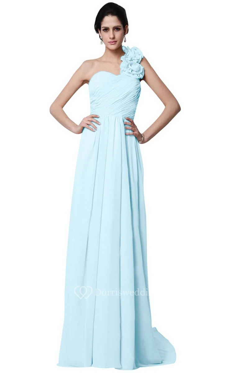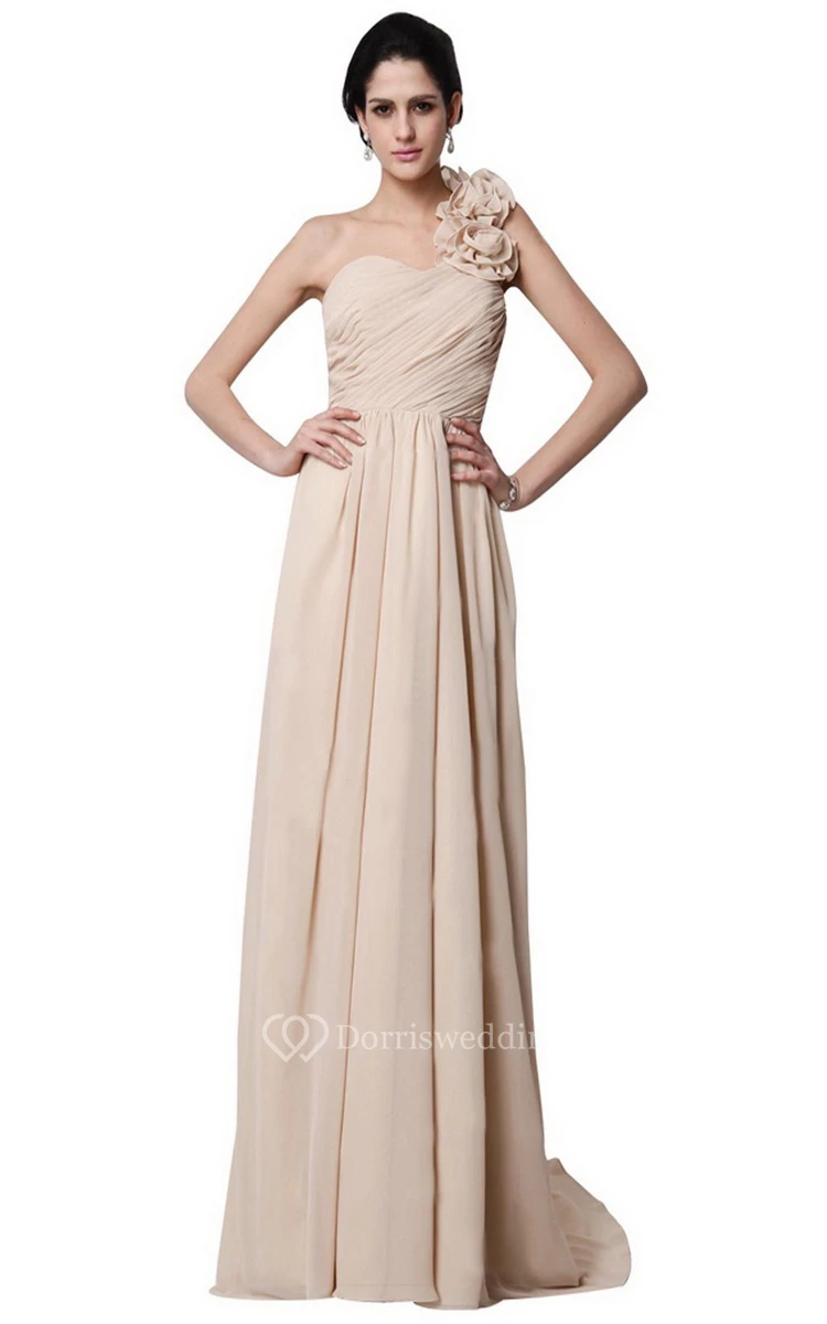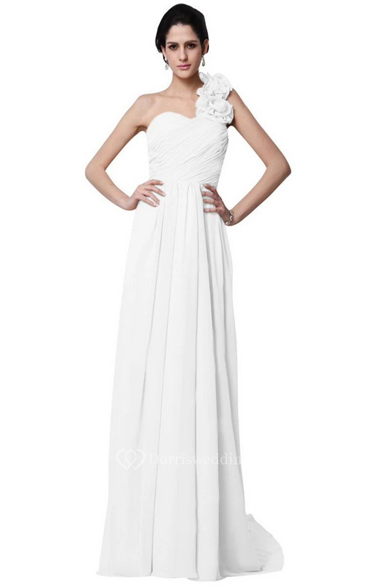 One-shoulder Long Chiffon Dress With Flowers