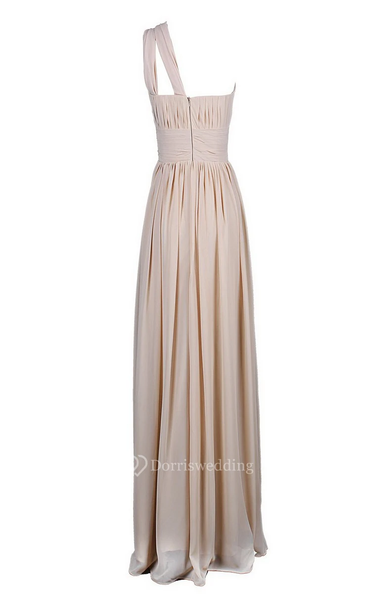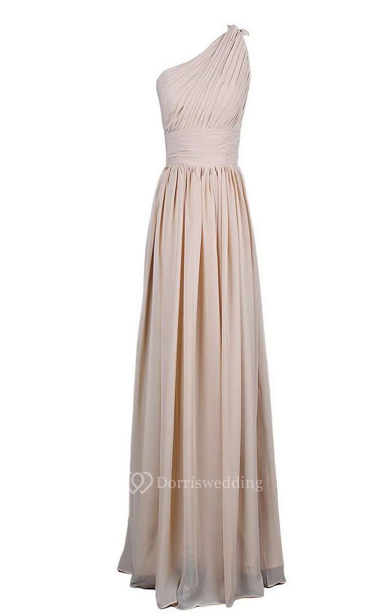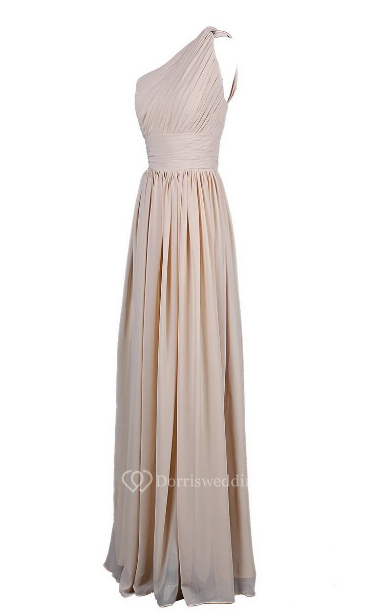 One-shoulder Long Chiffon Gown With Pleats