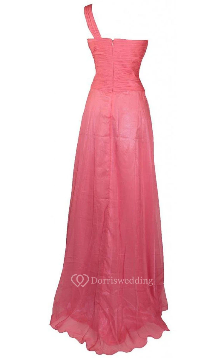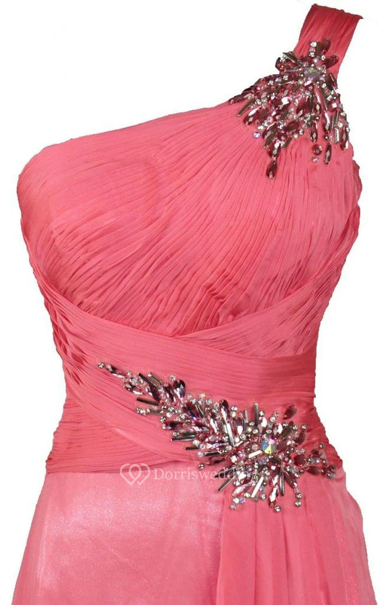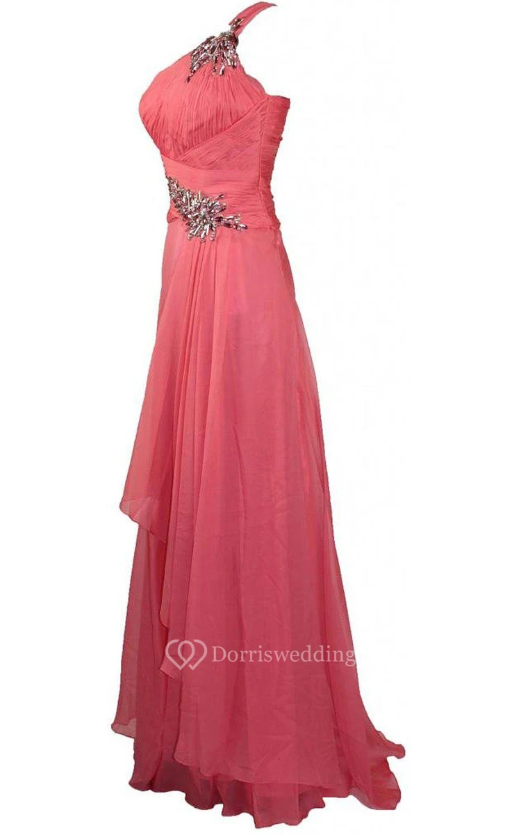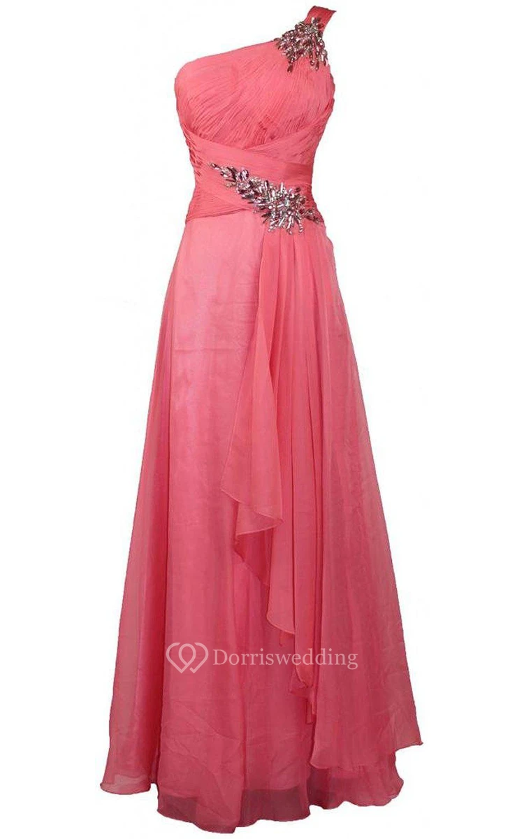 One-shoulder Long Dress With Beadings and Ruffles
