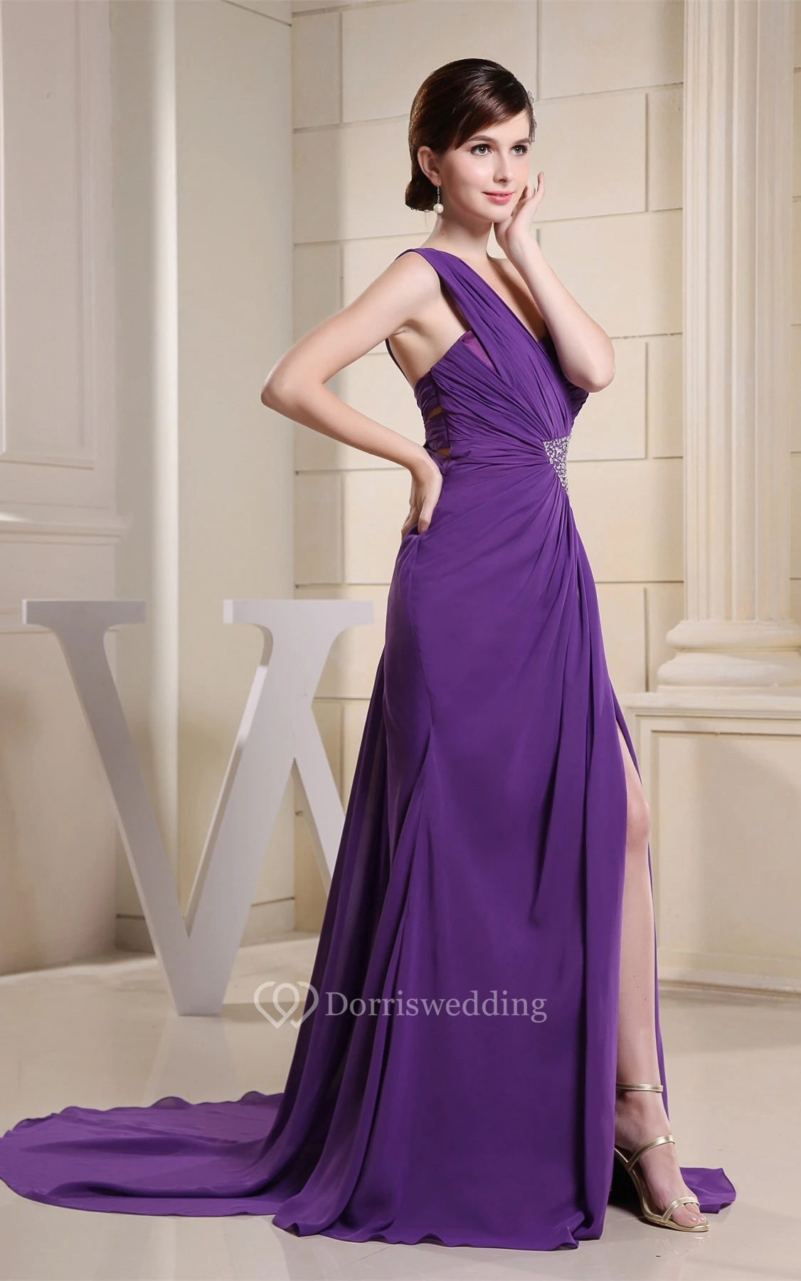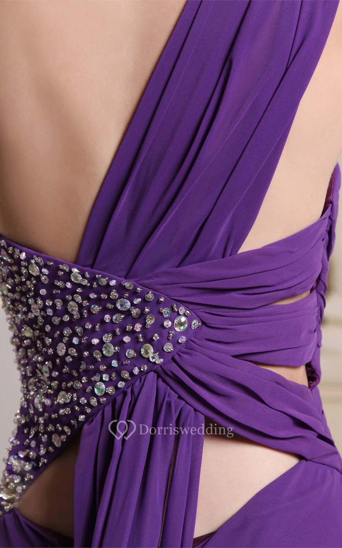 One-Shoulder Long Front-Split Side Beading and Dress With Ruching