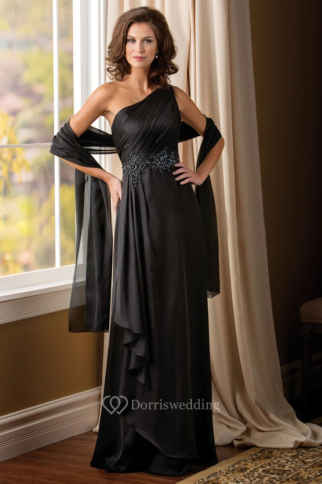 One-Shoulder Long Mother Of The Bride Dress With Ruffles And Beadings