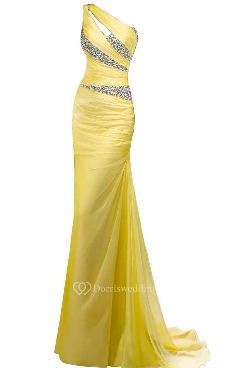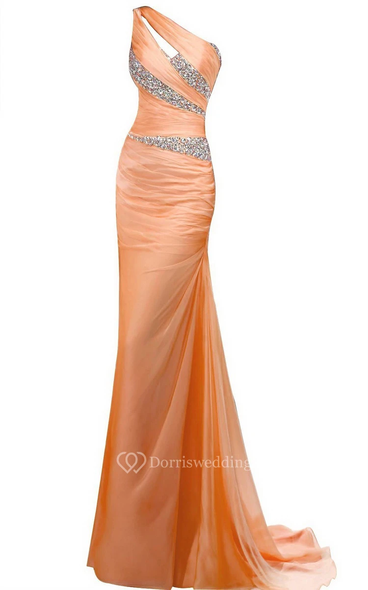 One-shoulder Long Sheath With Asymmetrical Sequins
