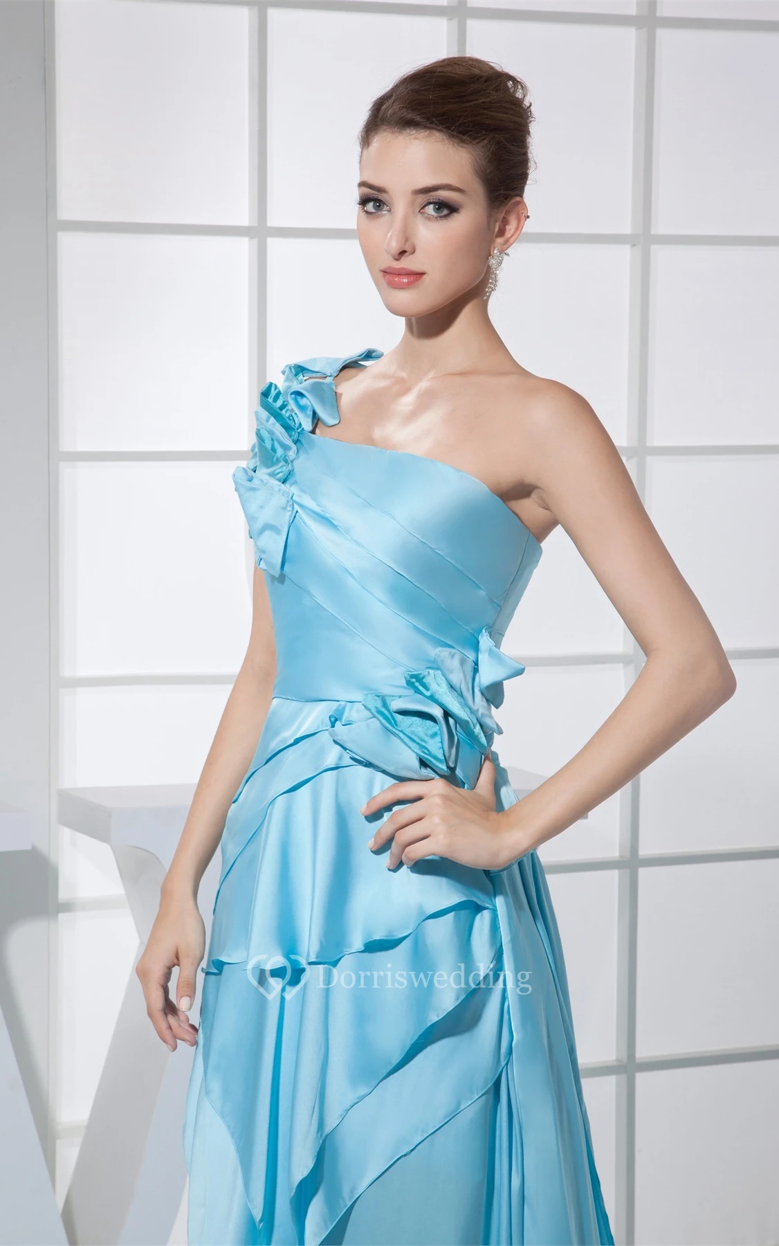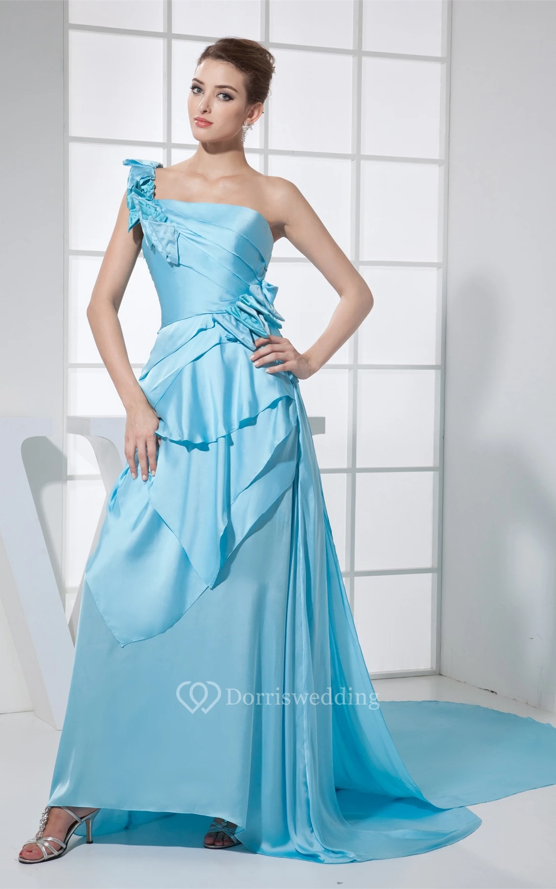 One-Shoulder Maxi Ruched Court Train and Dress With Pleats