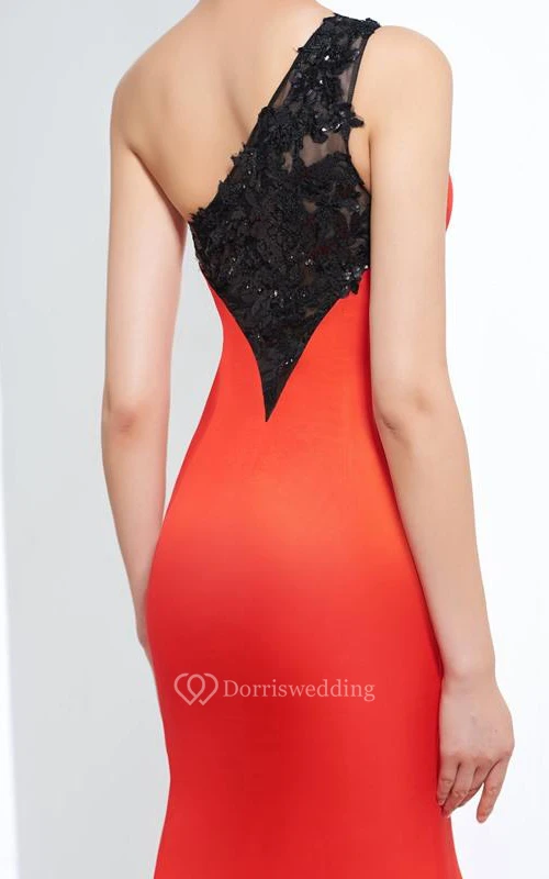 One-Shoulder Mermaid Appliques Sequins Split-Front Prom Dress