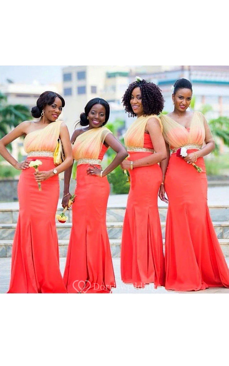 One-shoulder Mermaid Chiffon Dress with Pleats and Sequins