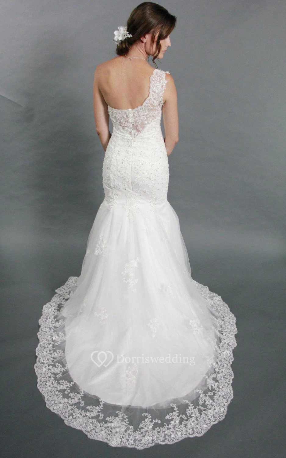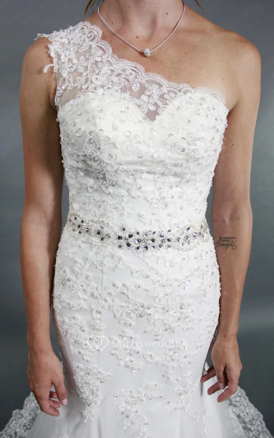One-Shoulder Mermaid Lace Bridal Dress With Crystal Detailing