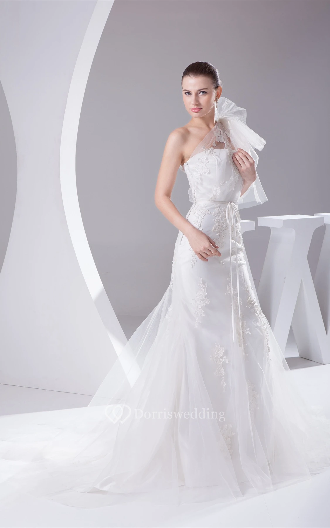 One-Shoulder Mermaid Tulle Appliques and Dress With Ribbon