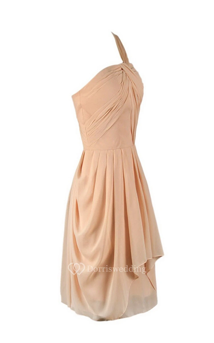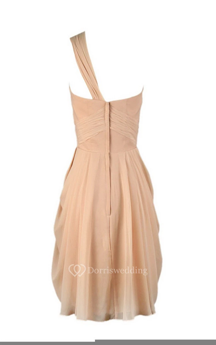 One-shoulder Mini Tiered Chiffon Dress With Pleats