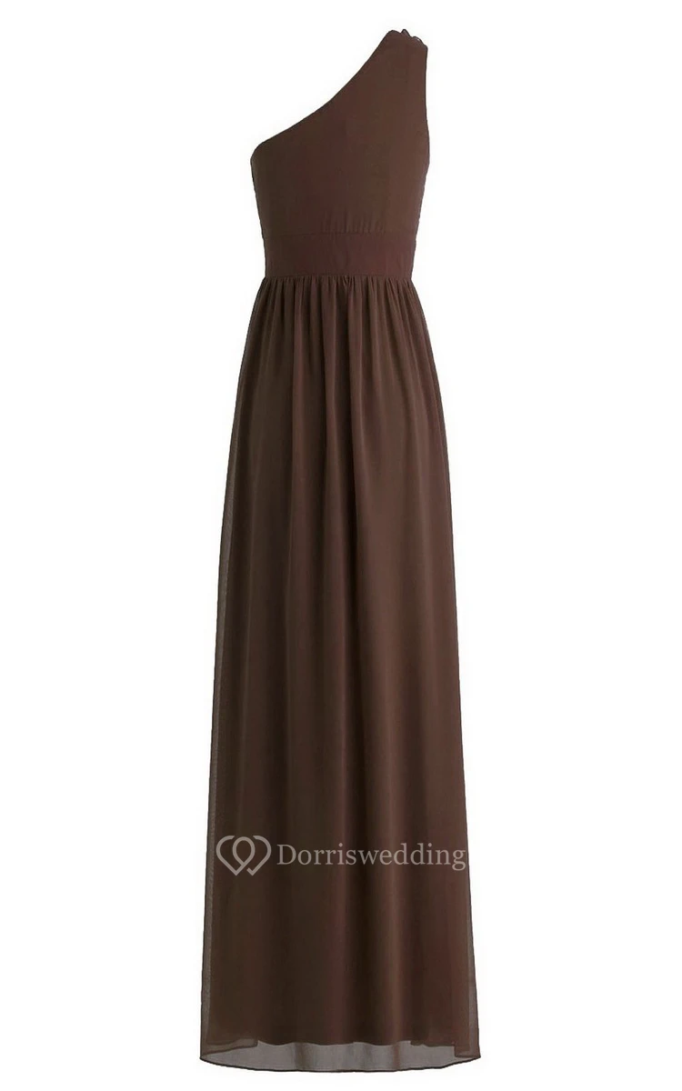 One-shoulder Pleated A-line Gown With Flowers and Band