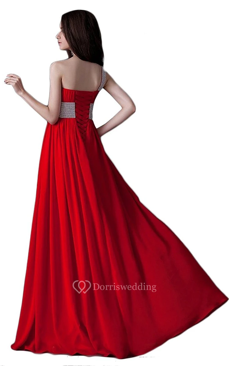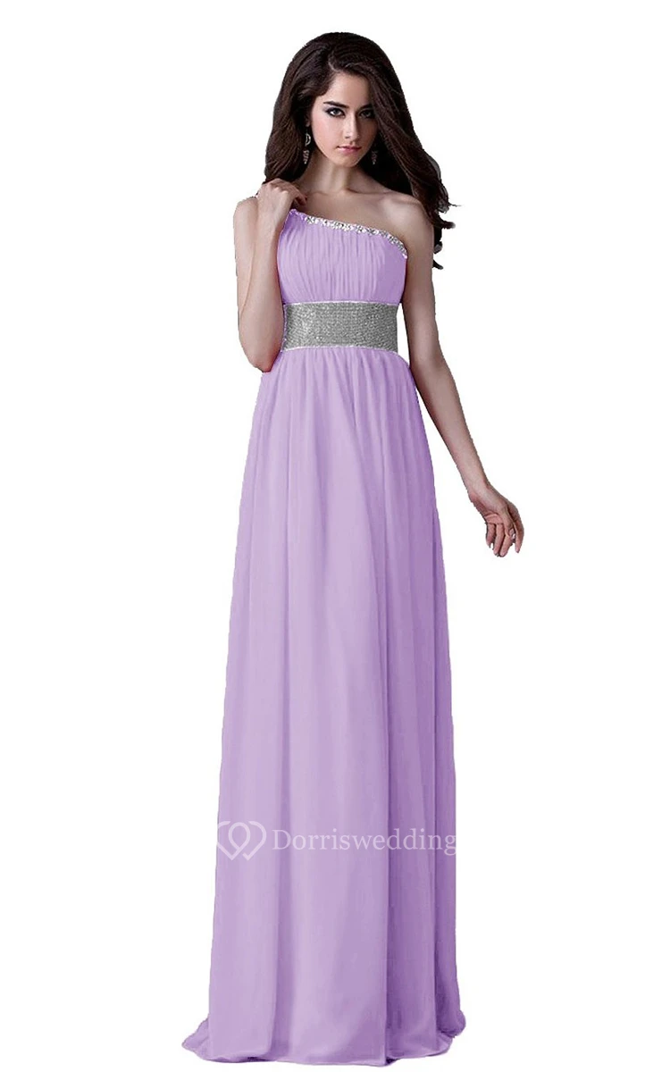 One-shoulder Pleated Chiffon A-line Gown With Beaded Band
