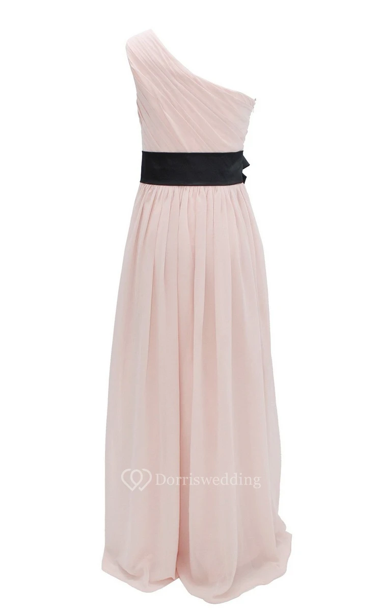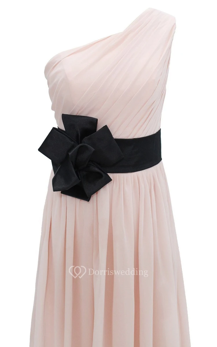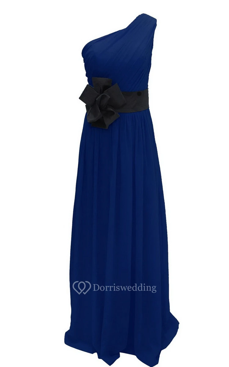 One-shoulder Pleated Chiffon A-line Gown With Floral Band