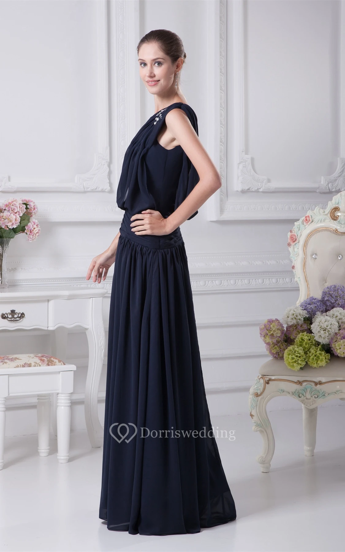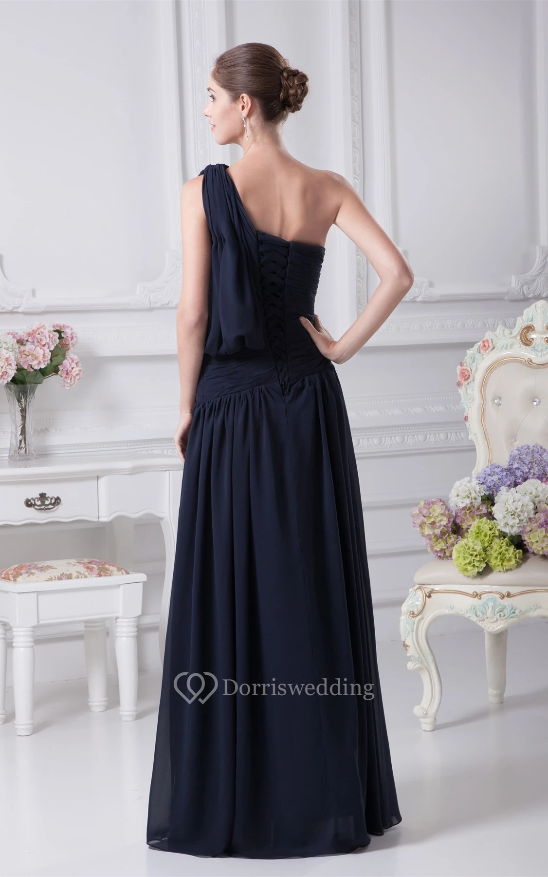 One-Shoulder Pleated Chiffon Corset Back and Gown With Beading