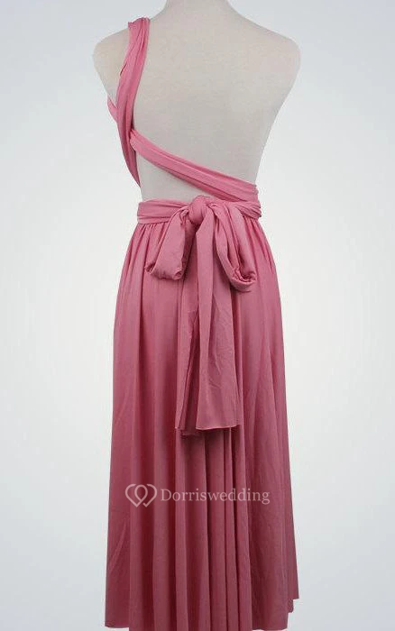 One Shoulder Pleated Jersey A-line Long Dress With Bow