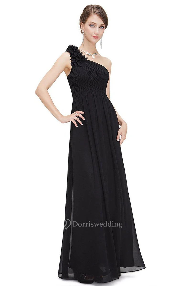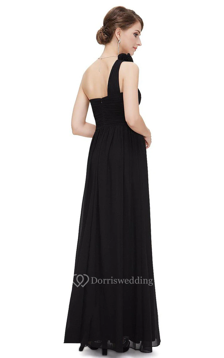 One Shoulder Ruched Chiffon Long Dress With Zipper Back