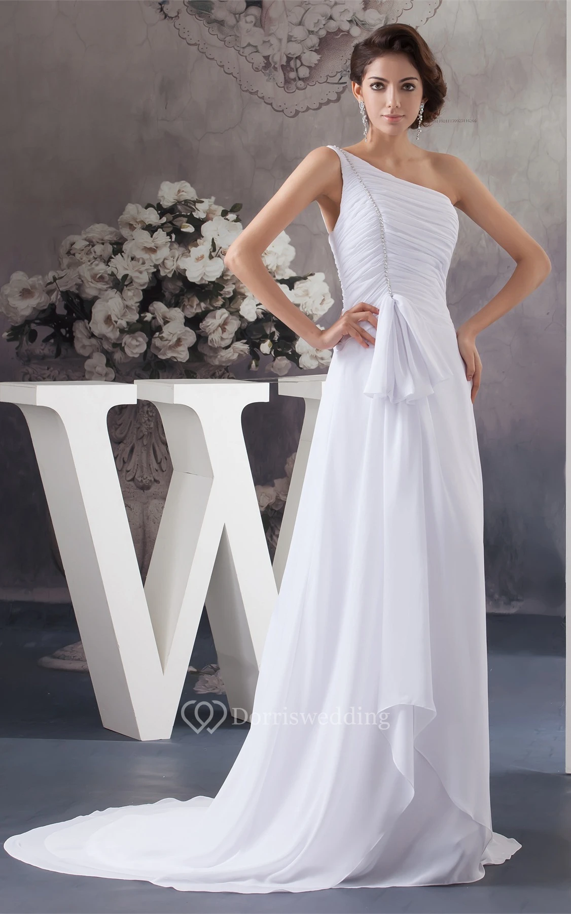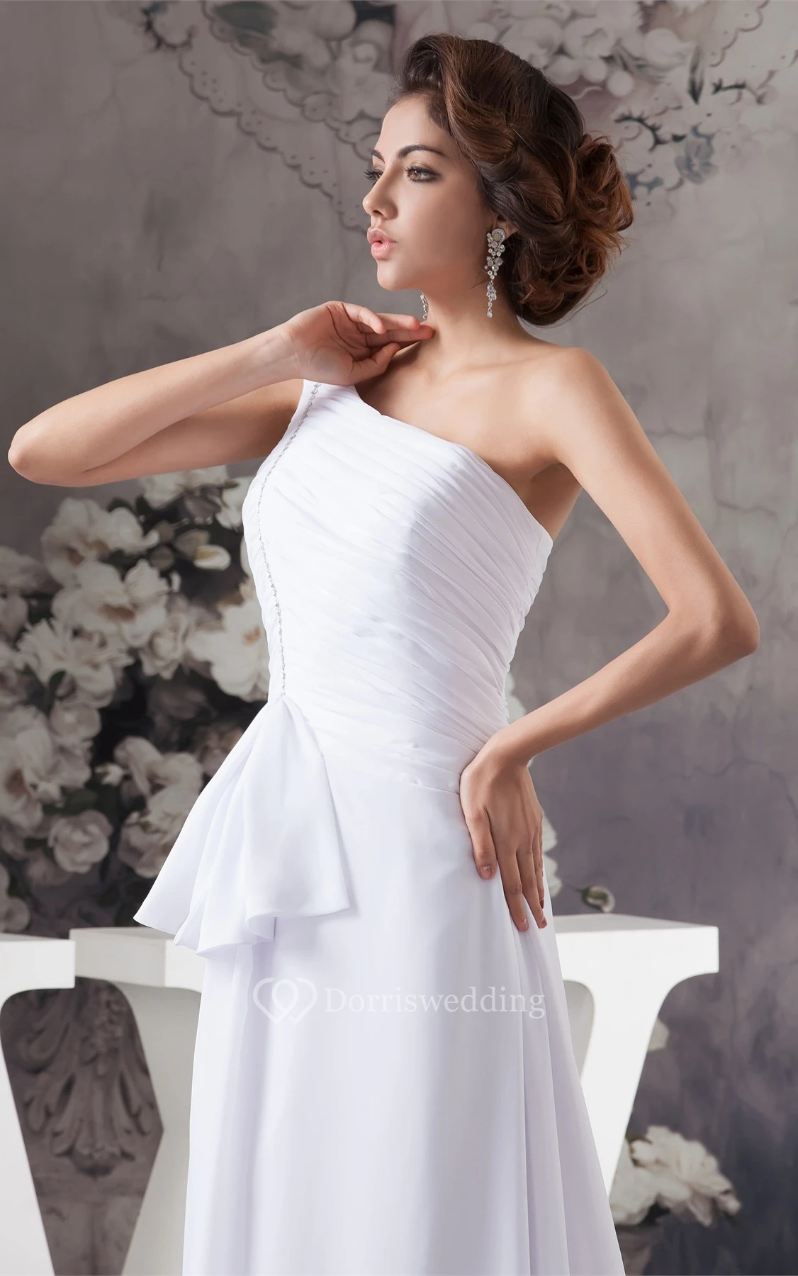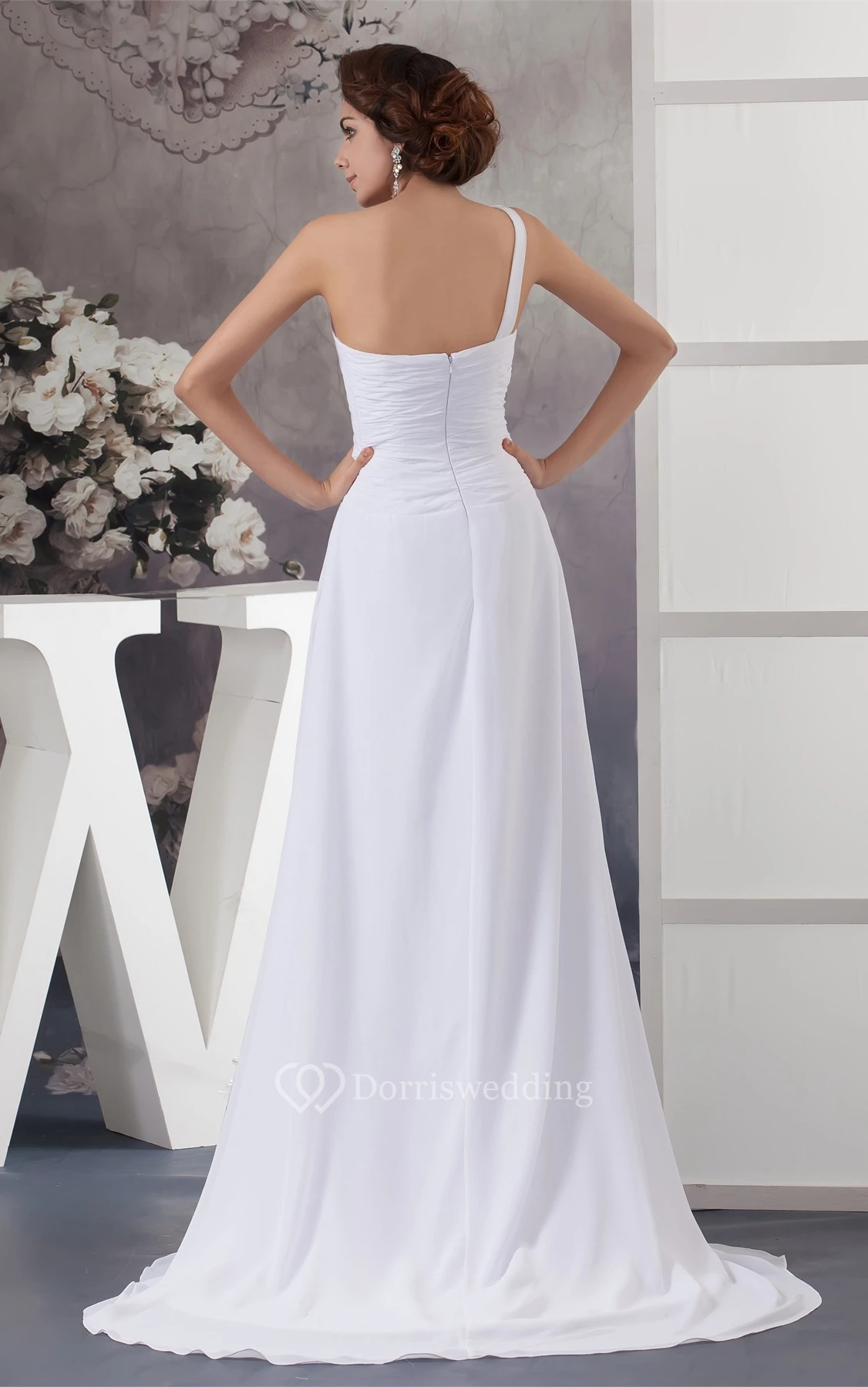 One-Shoulder Ruched Chiffon Sweep Train and Dress With Bow