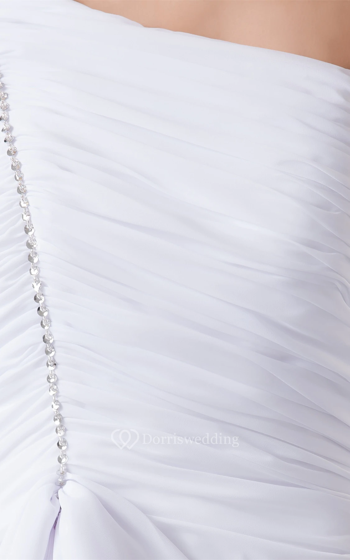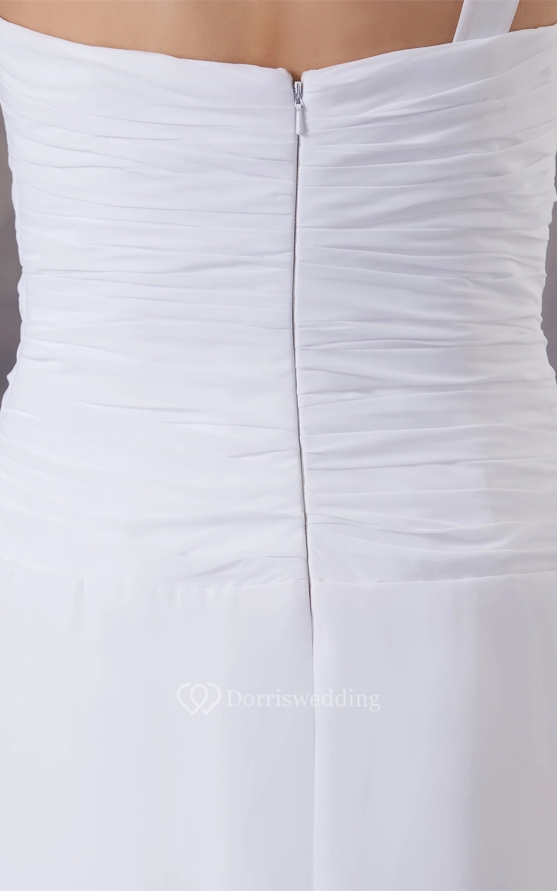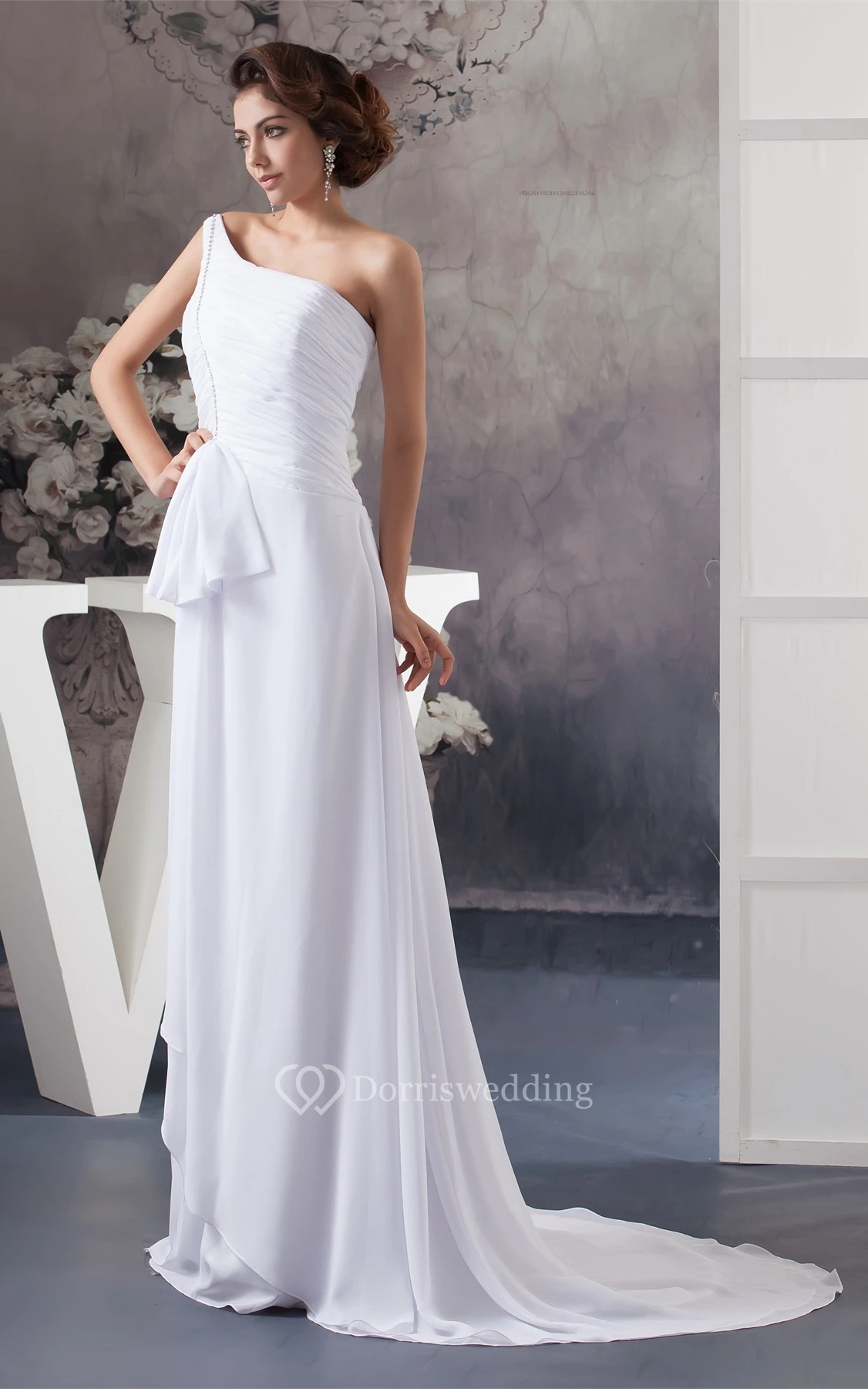 One-Shoulder Ruched Chiffon Sweep Train and Dress With Bow
