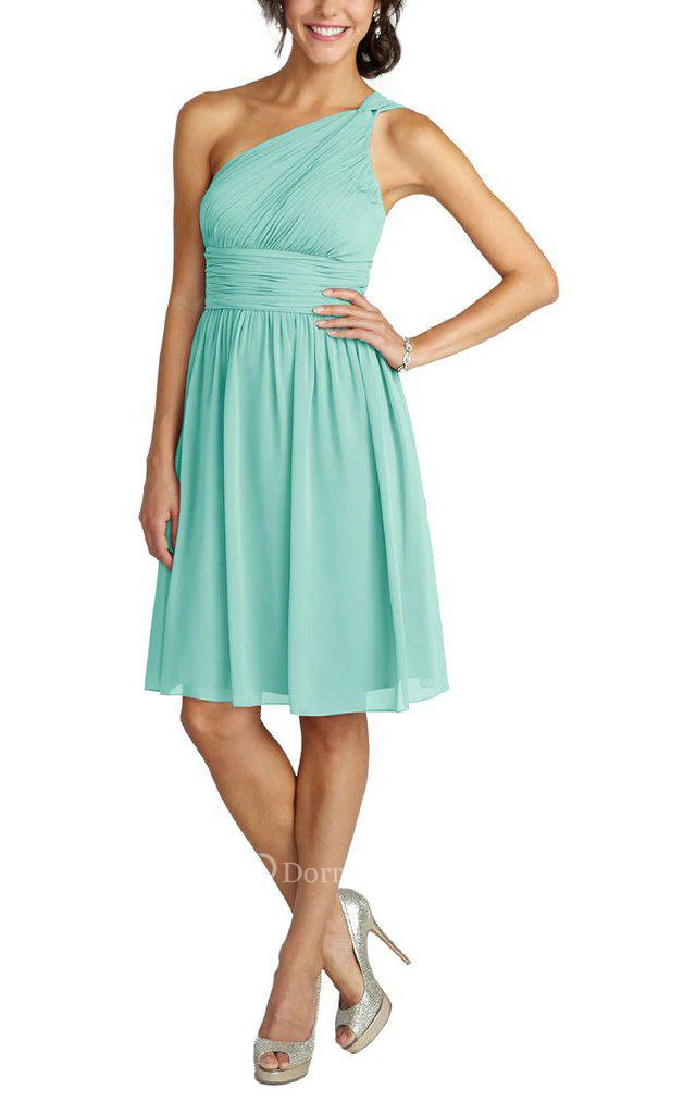 One Shoulder Ruched Short Chiffon Dress
