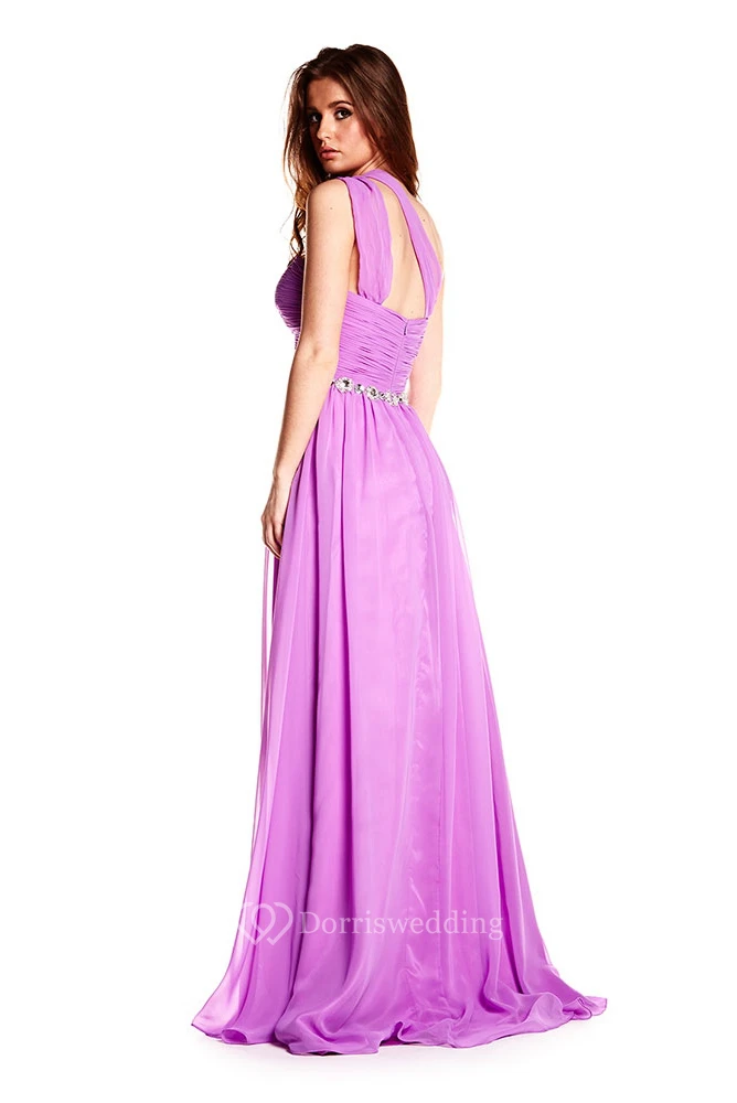 One-Shoulder Ruched Sleeveless Chiffon Prom Dress