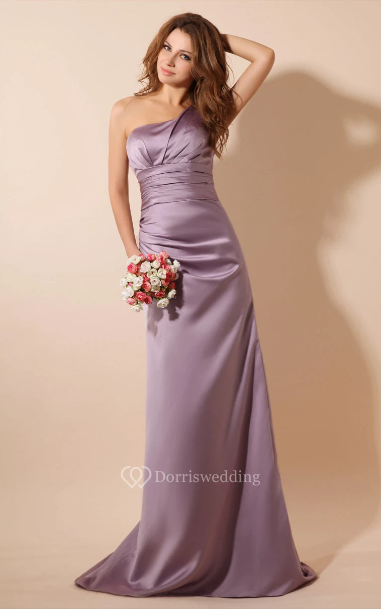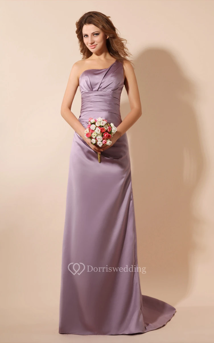 One-Shoulder Satin Floor-Length Dress With Brush Train