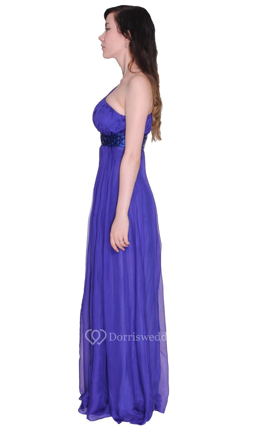 One-shoulder Sequined Waistband Long Pleated Chiffon Dress