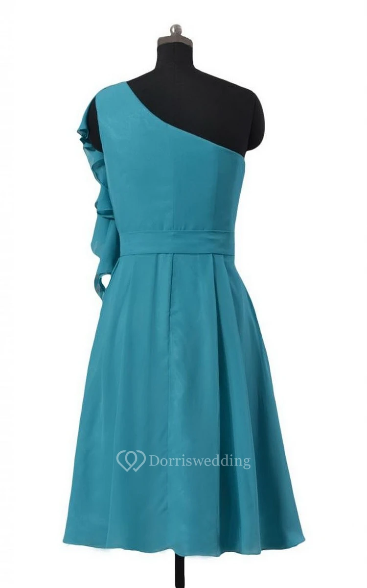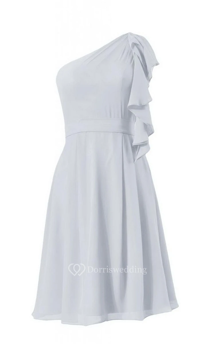 One-shoulder Short Chiffon Dress With Ruffles