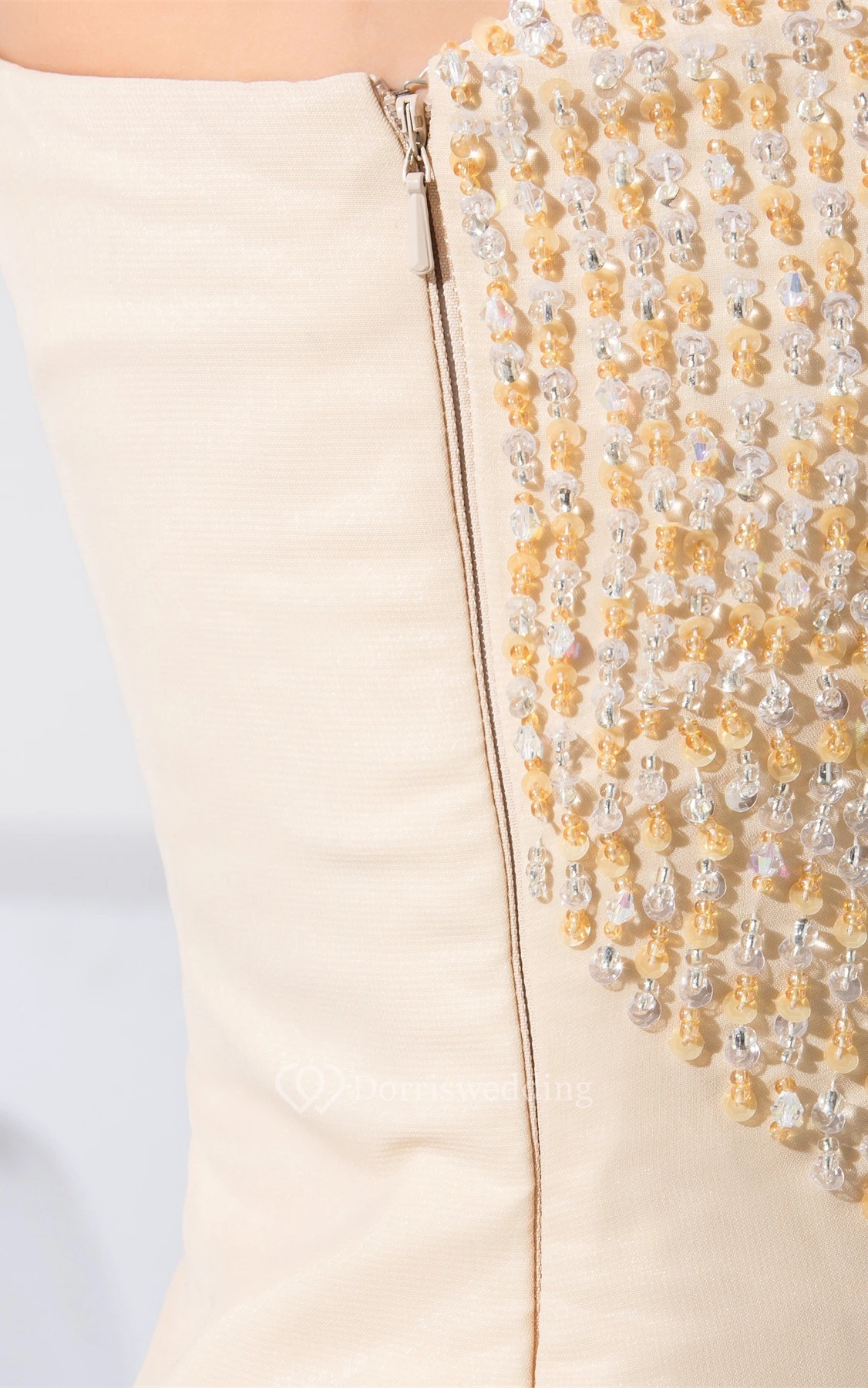 One-Shoulder Short Pencil Stress and Dress With Jewel