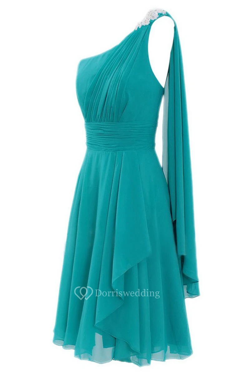 One-shoulder Short Tiered Dress With Pearled Shoulder