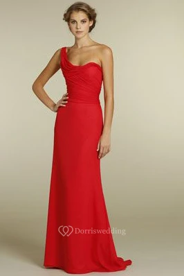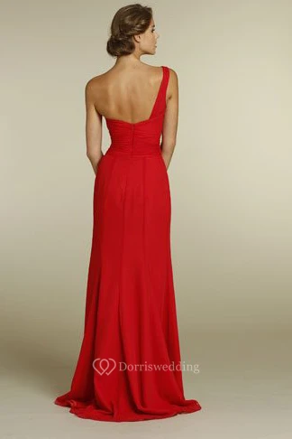 One-Shoulder Sleeveless Ruched Chiffon Bridesmaid Dress With Brush Train