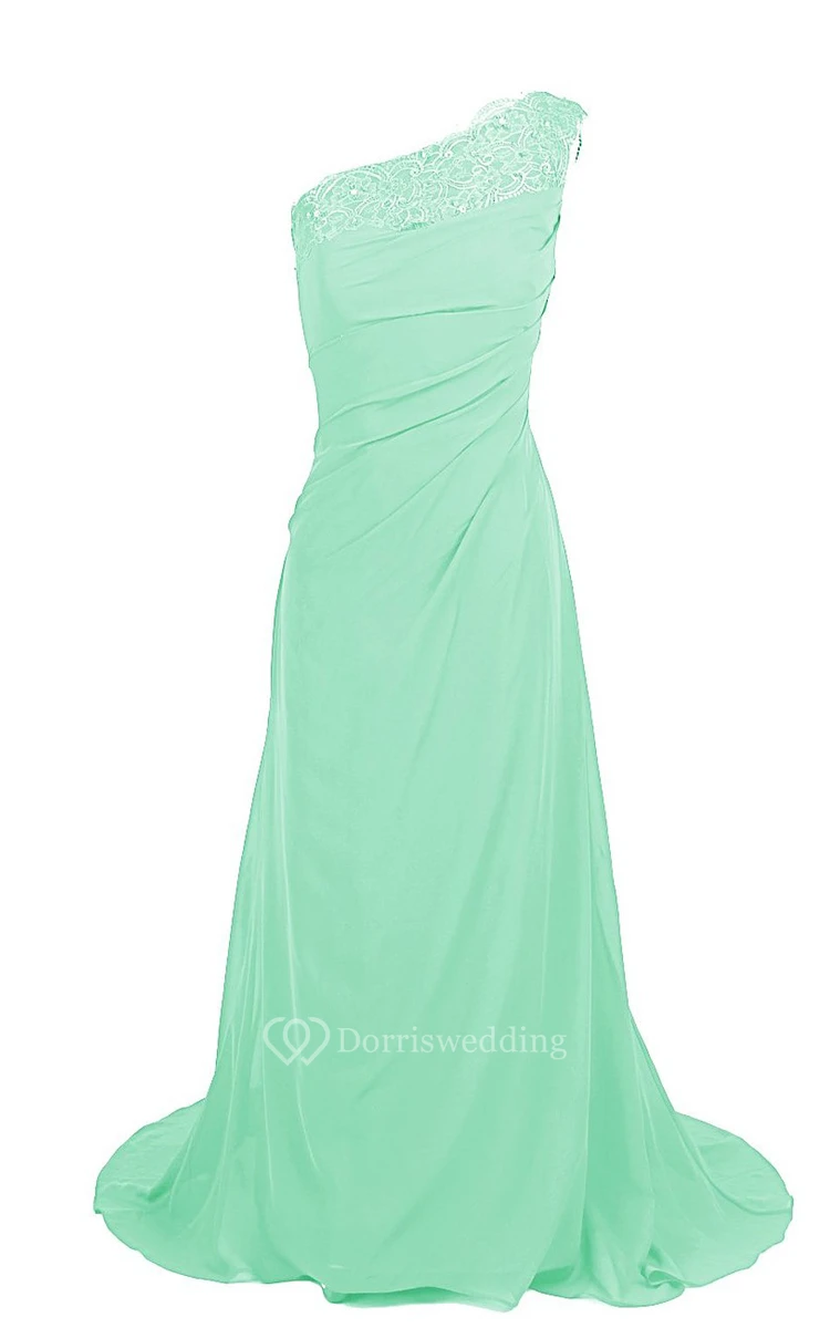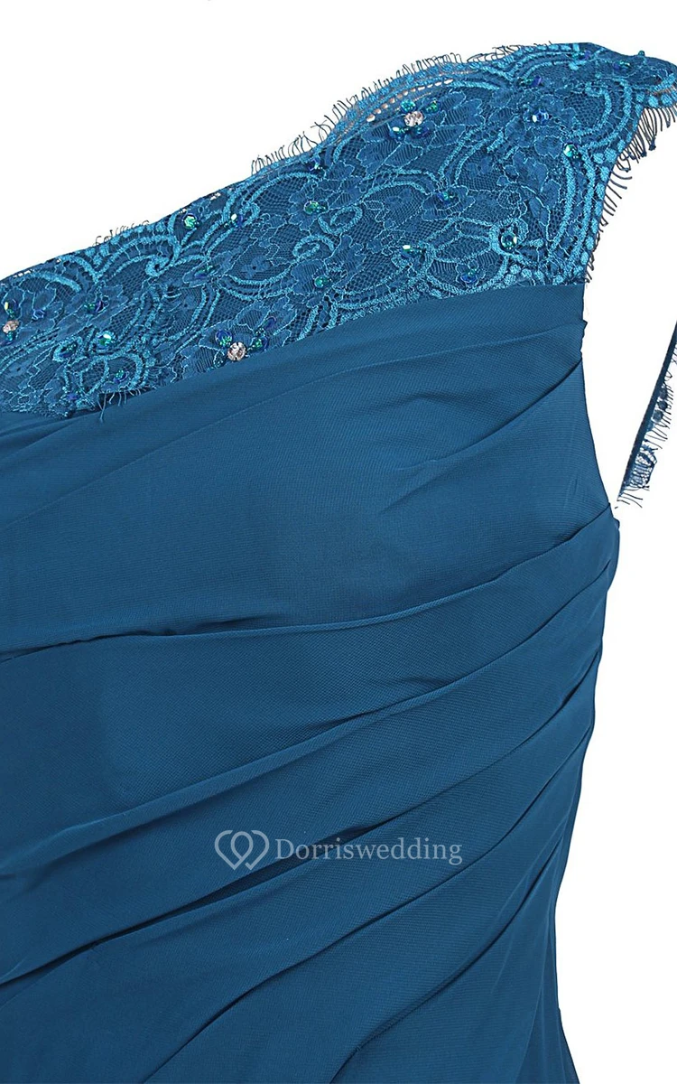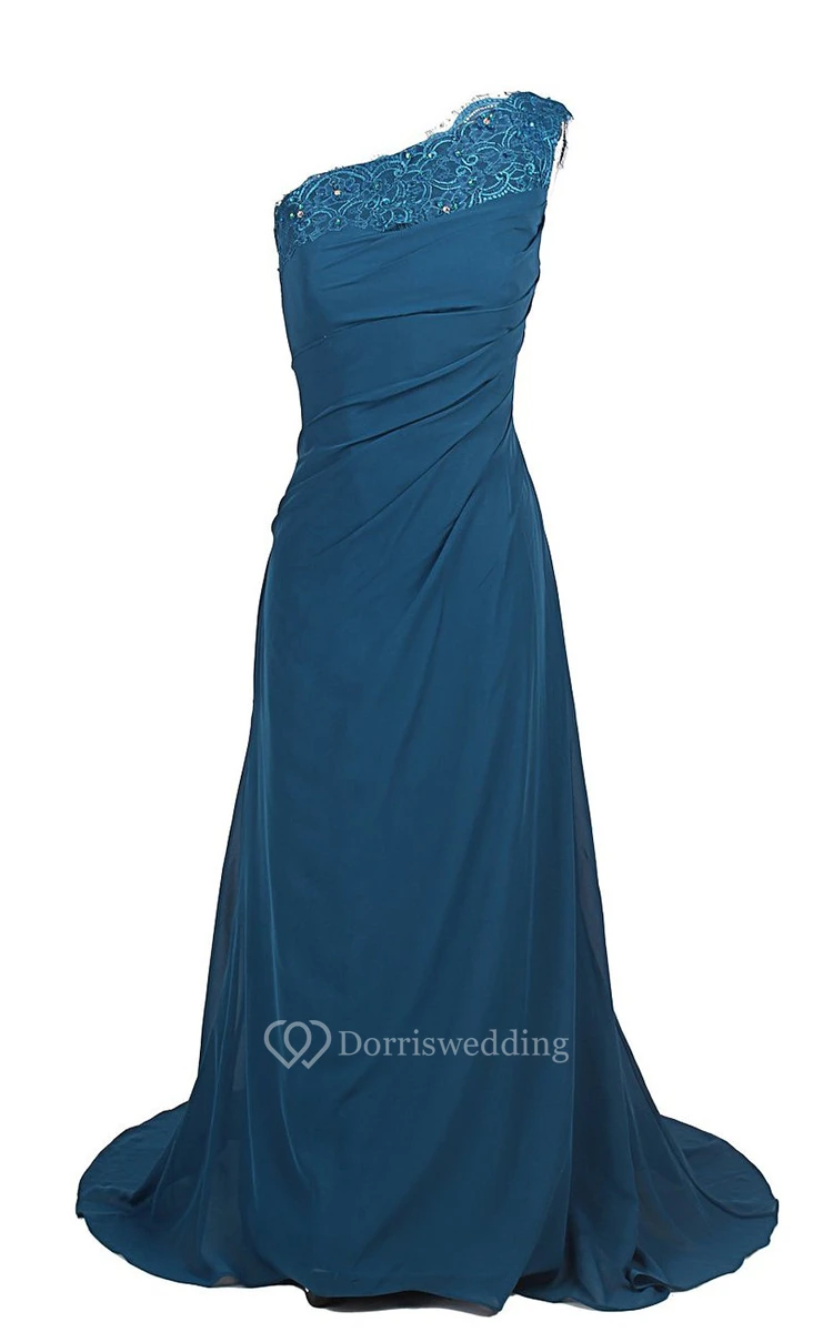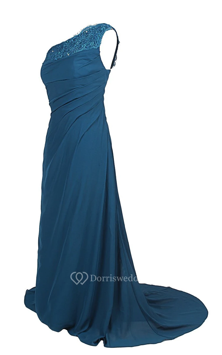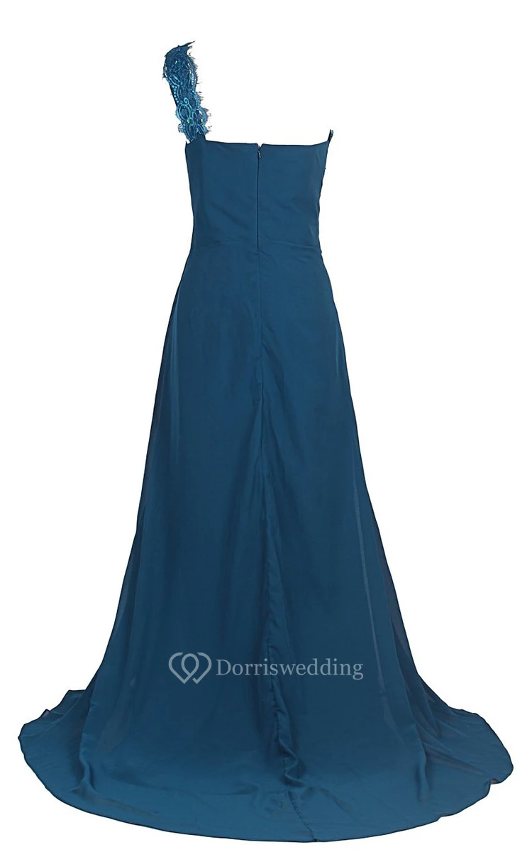 One-shoulder Sweep Train With Ruching and Zipper Back