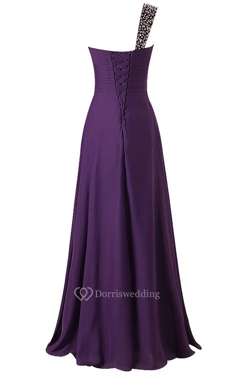 One-shoulder Sweetheart Chiffon Dress With Beadings